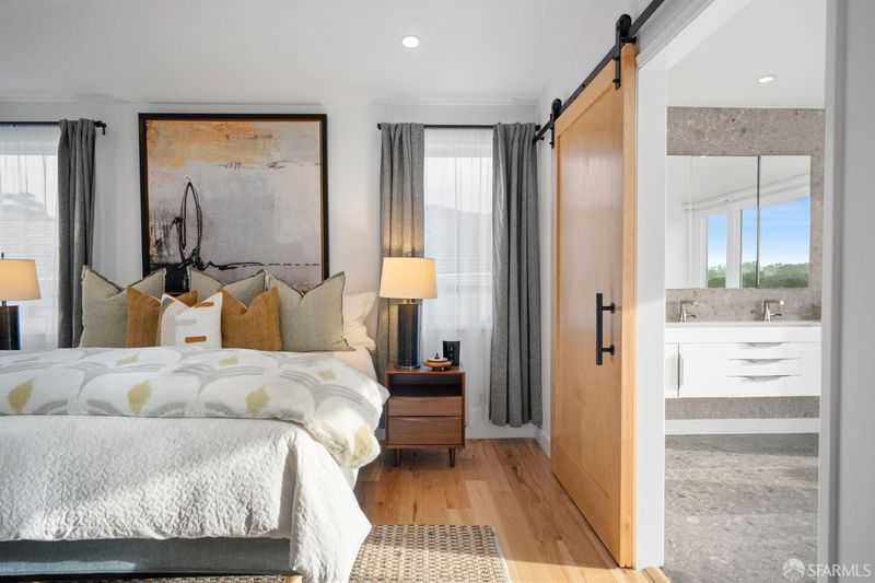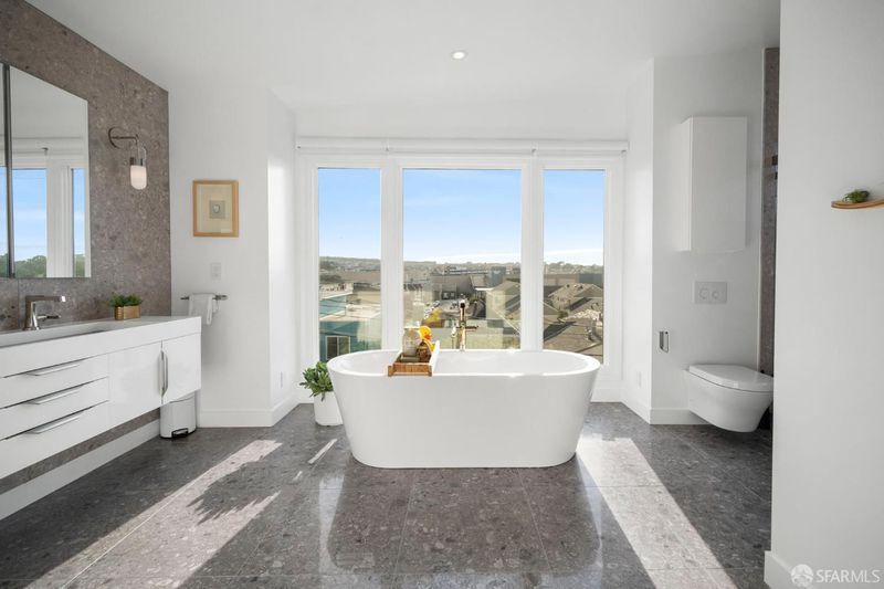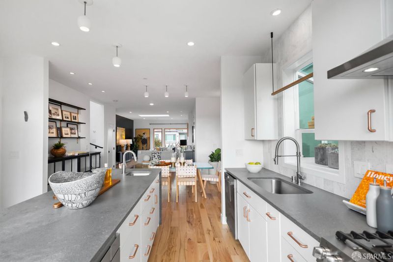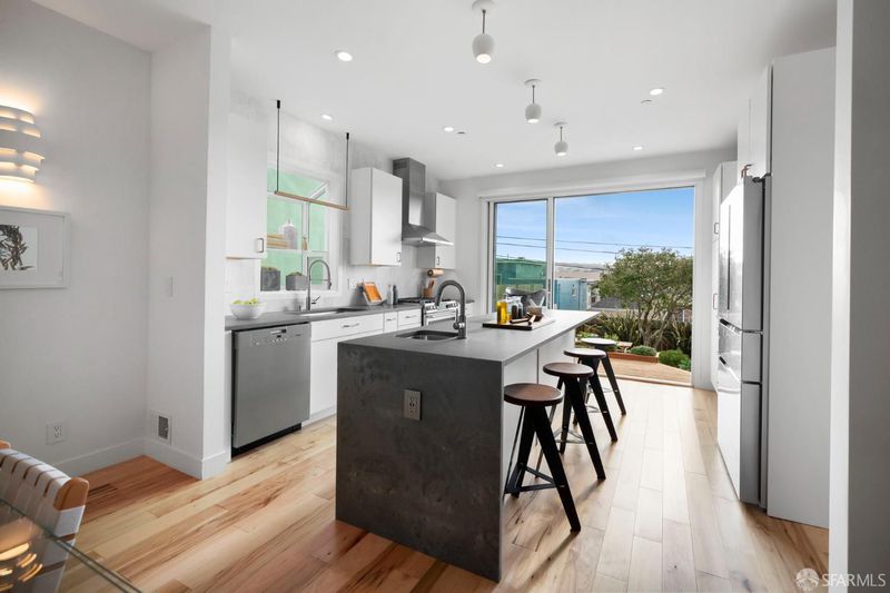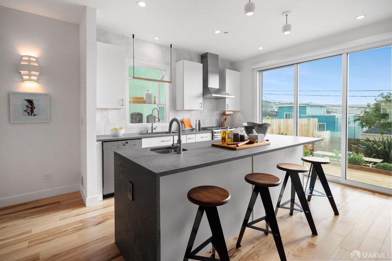Graceful and stylish, this reimagined Doelger home was fully remodeled in 2020 offering a rare chance to own an architectural gem in the Westlake District. Designed for modern living, this sunlit 3BR and 3BA residence features nearly 2,000 sq ft of open-concept living space with curated finishes and seamless indoor-outdoor flow. Set behind a beautifully paved driveway, the home welcomes you with striking curb appeal, soaring ceilings, and wood floors throughout. At the heart is a stunning entertainer's kitchen with a dramatic quartz island, flanked by moving glass walls that open to a private deck and expansive landscaped yard. The open living room features a gas fireplace, skylight, and oversized windows for timeless gatherings. The luxurious primary suite offers an impressive walk-in closet and spa-like bath with dual vanities and soaking tub overlooking the tranquil garden. The 2nd and 3rd brs are generous in size with natural light, a designer bath and laundry closet on this level. A lower-level office or guest suite with French doors to the garden & full bath adds flexible living space. Garage includes EV charging and storage, plus a driveway for 2 more cars. Located near Westlake Shopping Center, BART, and 280, this home blends architectural integrity with modern comfort.