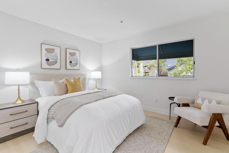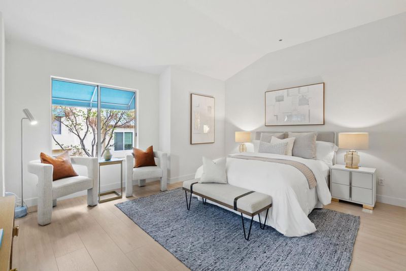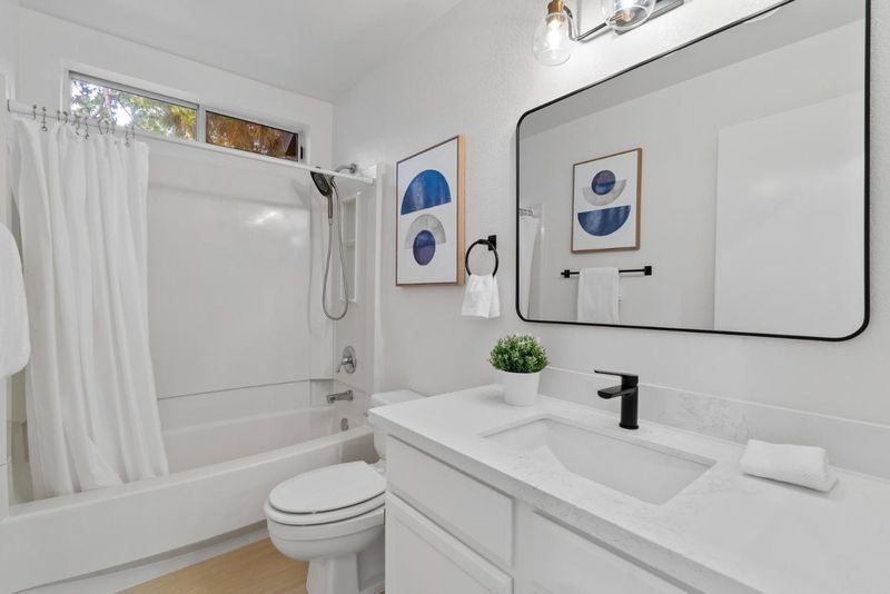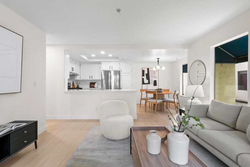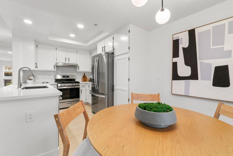 Located in San Joses desirable River Oaks neighborhood, the fully remodeled end unit home offers 3 bedrooms, 2.5 bathrooms, and 1,920 sq ft of living space. Brand-new laminate floors flow throughout, complemented by updated hardware, fresh paint, and modern light fixtures. The bright living room with soaring ceilings opens to a private patio, while the formal dining area overlooks the space. A remodeled kitchen with new Quartz countertops and brand new stainless steel appliances connects to a sunny breakfast nook and family room with its own balcony. Upstairs, spacious bedrooms include a serene primary suite, and the bathrooms have been remodeled with stylish finishes. The home is also equipped with Smart thermostat for comfort. Just steps to River Oaks Park, coffee shops, restaurants, and Agnew schools, and minutes to Nvidia, Google, and Broadcom, this home combines modern upgrades with an unbeatable location.
