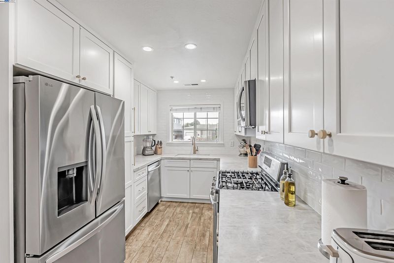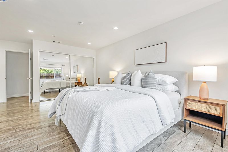 Framed by the foothills, this beautifully crafted single-story home offers the perfect blend of location, space, and modern upgrades. An open and inviting floor plan seamlessly connects the living, dining, and kitchen areas, creating a bright and functional space for everyday living. Thoughtful details throughout include central heating and air conditioning, updated bathrooms, quality laminate flooring, recessed lighting and dual-pane windows. The gorgeously remodeled kitchen offers custom white cabinetry, quartzite countertops, subway tile backsplash, and stainless steel appliances. Retreat to the spacious primary suite, complete with four closets for ample storage and a private bathroom. Outdoors, the backyard is designed for enjoyment with a stamped concrete patio, lush lawn, and built-in hammock poles that invite relaxation or fun in the sun. Outdoor enthusiasts will love the close proximity to Alameda Creek Trail, Quarry Lakes, and Coyote Hills, offering endless opportunities for hiking & biking just min