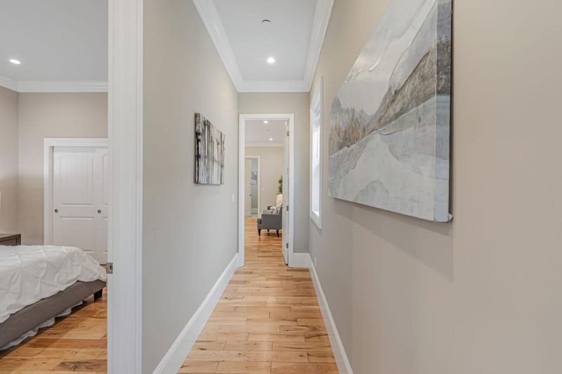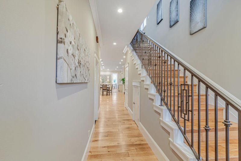 This contemporary home offers a thoughtful balance of style and function. High ceilings, beautiful hardwood floors, and an open floor plan create a bright and inviting living space. The kitchen is well-equipped with quartz countertops, a designer backsplash, 36 cooktop/oven, wine fridge, and an upgraded refrigerator. A flexible den overlooking the yard provides a comfortable option for a home office or studio. Practical upgrades include an electric front gate, new water heater, and a Climate Pros security system with reinforced doors and windows on the ground floor. Additional details include recessed lighting, luxury crown and baseboard molding, spa-like baths, and a built-in safe. With a one-car garage plus an additional parking space, the home is also conveniently located near the farmers market, downtown Oakland, the Bay Bridge, and major freeways.