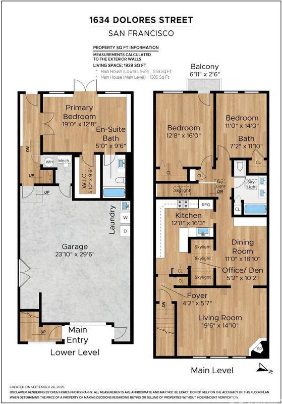 Recently remodeled Noe Valley home featuring 3BR/2BA & 1,939 SqFt (per graphic artist)The main level has hardwood floors, a light-filled living room with a decorative fireplace, an updated kitchen (stainless steel appliances, quartz counters), 2 spacious BRs, a skylit office nook & a remodeled full bath. The lower level is a serene primary suite with a walk-in closet & spa-like ensuite bath. French doors & a separate side hallway provide dual access to the large, flat landscaped backyard with mature plantings & avocado treeperfect for entertaining. A 2-car garage with interior access & abundant storage offers ultimate convenience. With a Walk Score of 98, this prime location is a flat stroll to 24th St's vibrant shops, cafes & farmers market, plus Upper Noe Rec Ctr & Dolores Park. Near acclaimed dining, this urban oasis combines charm, comfort & unbeatable walkability.
