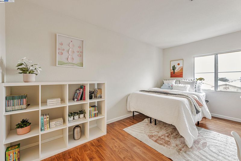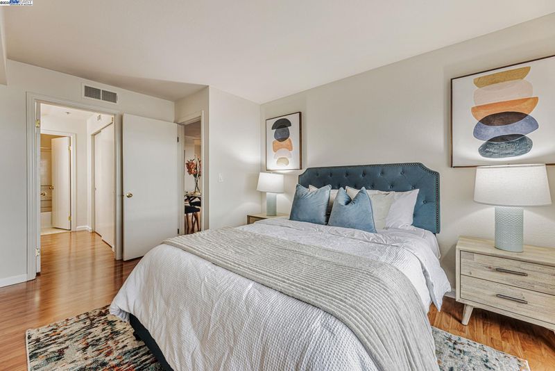 Welcome to your dream home in the desirable Bayside Commons! This top floor spacious 2-bedroom, 2-bathroom condo offers 1,170 square feet of beautifully designed living space, filled with natural light and soaring high ceilings that create an open, airy feel. Take in gorgeous, panoramic views of San Francisco and the iconic Golden Gate Bridge—a perfect backdrop for everyday living and unforgettable moments. During special events and holidays, enjoy front-row seats to spectacular fireworks shows by the bridge right from the comfort of your home. Both bedrooms are generously sized, ideal for relaxation or working from home. The open-concept living and dining areas make entertaining a breeze, and the well-appointed kitchen offers functionality and style. Community amenities include a sparkling swimming pool, well-equipped gym, tennis courts, and scenic walking trails just behind the property. Plus, enjoy lower HOA fees than other nearby communities—giving you luxury living without the extra cost. Don’t miss the chance to live in one of the East Bay’s most sought-after communities, where every day feels like a retreat.
