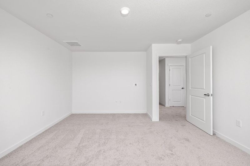The Stinson floorplan masterfully blends space and convenience across its two stories, featuring five bedrooms and thoughtfully designed living areas. On the first floor, the heart of the home unfolds with an open layout that seamlessly integrates the kitchen, family room, and dining area, creating an ideal space for gatherings and daily living. The kitchen boasts a spacious walk-in pantry, perfect for keeping essentials within reach, and a full bathroom near the fifth bedroom adds versatility and ease. This downstairs bedroom can serve as a guest suite or a private office. The second floor is dedicated to four additional bedrooms, including a generous master suite that offers a retreat-like atmosphere. The master bath is elegantly appointed with a dual sink vanity and a step-in shower, enhancing the sense of luxury. A large laundry room adds to the home's functionality, while the secondary bathroom is well-equipped with a sizable vanity and a convenient tub/shower combination, accommodating the needs of the whole household.