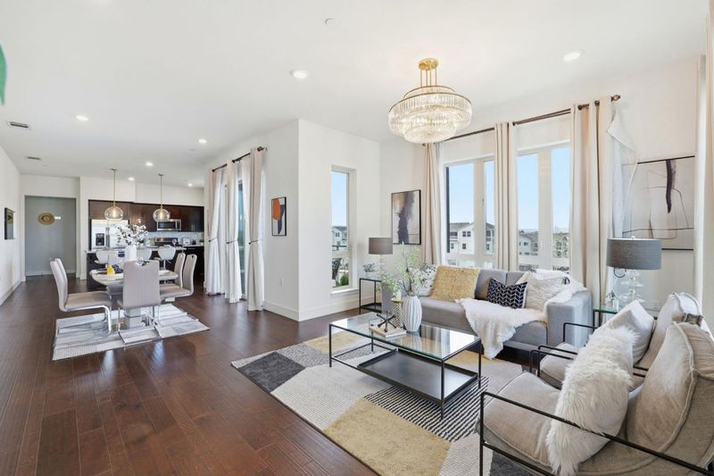 Discover the essence of modern luxury in this stunning, move-in-ready penthouse perched high above Milpitas, offering breathtaking panoramic views across Silicon Valley. This single-level residence boasts an expansive 1,833sqft open-concept layout flooded with natural light, premium hardwood flooring, luxury lighting, custom built-in closet cabinets and true privacy with no shared walls. The heart of the home is a chef's dream gourmet kitchen featuring pristine granite countertops, premium stainless steel appliances, and a high-performance gas range perfect for crafting everyday meals or entertaining with ease. Built in 2018 and meticulously well maintained in like-new condition, this home delivers ultra-premium living with effortless style and comfort. Enjoy an enviable commute with quick access to major highways, plus close proximity to the Great Mall, lots of dining options, Costco, Target, Trader Joe's, Northwood Elementary rated 9/10 and top-rated Stratford School. Conveniently located near Milpitas BART / VTA. Step outside to a vibrant community atmosphere with friendly neighbors, playgrounds, BBQ areas, and plenty of California sunshine to enjoy year-round. Live in exceptional elegance and experience Silicon Valley luxury at its finest!