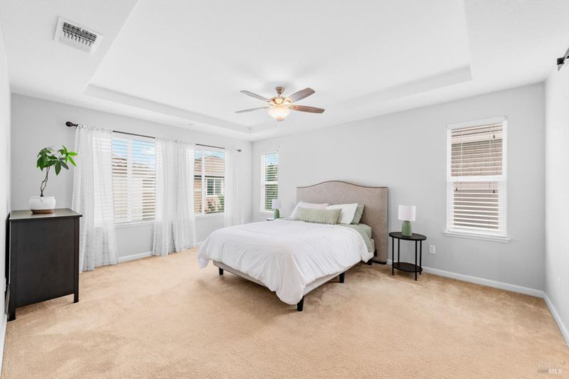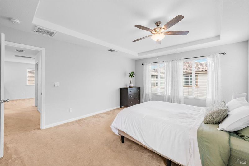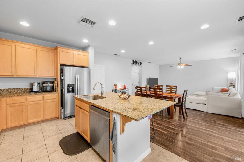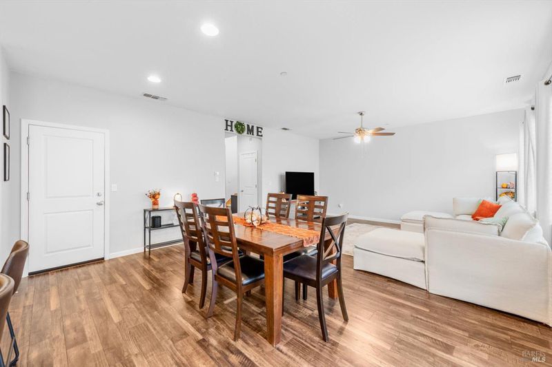 Welcome to this well-maintained home tucked into a quiet Dixon cul-de-sac. The inviting floor plan features a bright living and dining area that flows seamlessly into the backyard, creating an ideal space for indoor-outdoor living. The kitchen is complete with granite countertops and stainless steel appliances, including a pantry and an island with bar seating. Upstairs you will find a spacious loft, laundry room, and three bedrooms. The primary suite offers a walk-in closet, dual sinks, soaking tub, and separate shower. The backyard is recently updated with turf, including a patio area perfect for barbecues, entertaining, or relaxing. Conveniently located near schools, parks, and Dixon's historic downtown Main Street with shops, restaurants, and community events. Easy access to Travis AFB and I-80 for commuters. VA Assumption for eligible veterans.