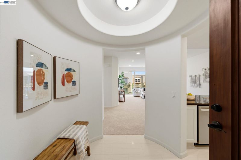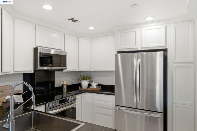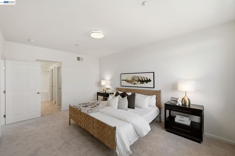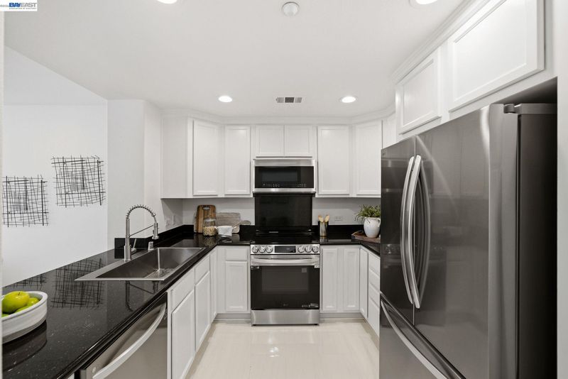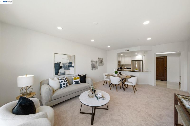 Set within Fremont’s sought-after, gated Montebello Warm Springs community and served by award-winning Warm Springs schools, this beautifully updated 2-bedroom, 2-bath condo offers 1,081 sq ft of light-filled, elevated living. A welcoming entry with porcelain tile leads to freshly painted interiors and a seamless, open flow. The upgraded kitchen pairs granite countertops with new stainless steel appliances and the ease of an in-unit washer and dryer. In the living and dining areas, new recessed lighting creates a warm, modern ambiance, while a new patio slider opens to a spacious private patio—perfect for indoor-outdoor entertaining. New plush, padded carpeting adds comfort and polish, and central heat and A/C ensure year-round ease. The serene primary suite features a generous walk-in closet, soaking tub, and a new quartz dual-sink vanity accented by a new light fixture. The upgraded guest bath is equally refined with new quartz countertops and a new light fixture.Enjoy two assigned tandem parking spaces.