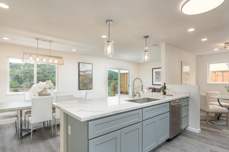 Completely renovated from front to back! This wonderful move-in ready home is ideally situated on a quiet street surrounded by hill views on both sides. The house has been comprehensively remodeled to a high standard, with permits. Some of the updates include a new roof, new electric (solar and EV charger ready), complete new kitchen, multiple new windows and sliders, planned network wiring for internet and security connectivity, new concrete front and back, new flooring, and various additional features too numerous to list. A sizable primary suite looks across the valley and flows nicely into its large private en suite bath. The kitchen comes stocked with new appliances and a deep-basin stainless sink on the island plus a second pot-filler sink above the stove. This charming home is close to good schools, shopping, and transit, while retaining a peaceful neighborhood allure on a low-traffic street. Additional features include new lighting, fencing, driveway, gutters, sewer and water lines (including sewer lateral), heating, insulation, doors, wifi doorbell system, and more interior and exterior finishes. The oversized garage boasts a new tankless water heater and a new washer and dryer, with plenty of room for further storage or a workshop.