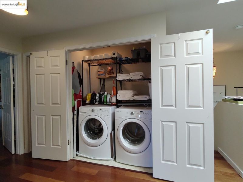 - 220 Volt Outlet, Dryer, Gas Dryer Hookup, In Garage, Laundry Room, Washer, Electric, See Remarks, Upper Level, Washer/Dryer Stacked Incl