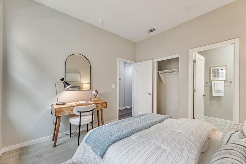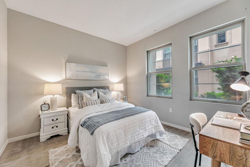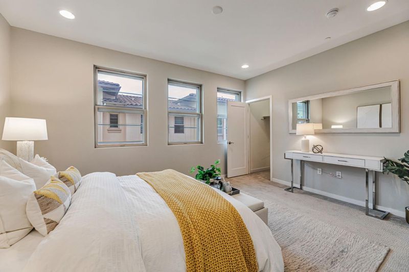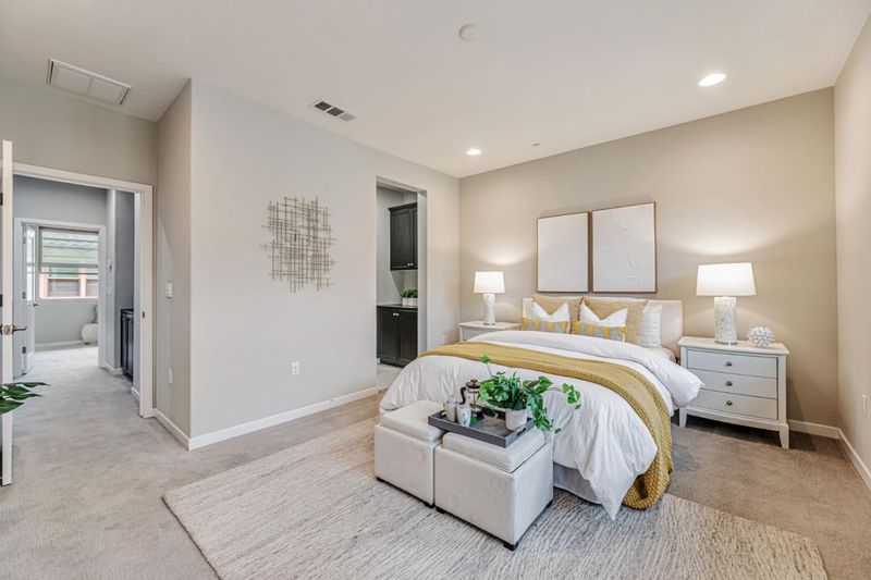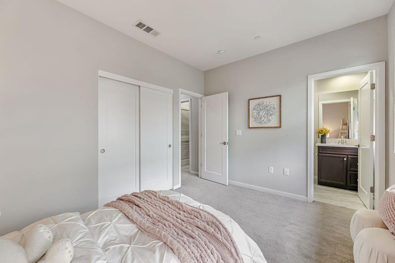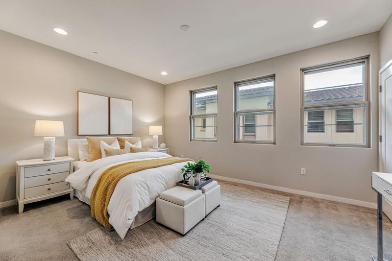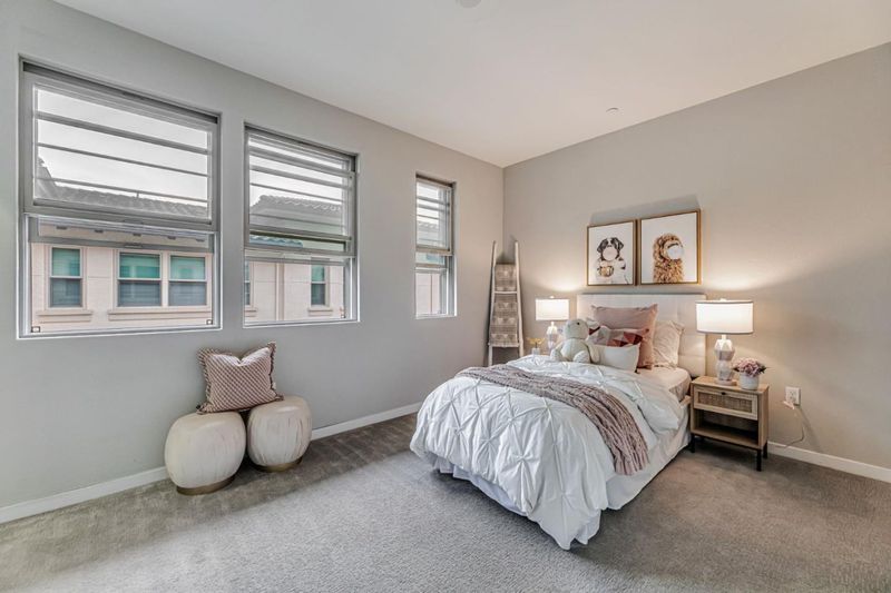 Welcome to this primary location of North San Jose, this community with a large clubhouse, a spacious park for children, and scenic walking trails. Directly across from a golf course, it is conveniently located within walking distance to Sprouts, H-Mart, City Sports, various dining options, banks, and more. This premium 3-bedroom, 3.5-bathroom townhouse have 3 master suite, the first floor accommodating a generous bedroom and a full bathroom, ideal for guests or in-laws. The open living room get a lots of sunlight, highlighted by a beautiful glass sliding door that opens to a large balcony. The kitchen is designed with a central island, stylish backsplash, and stainless steel appliances, complemented by ample storage throughout the home. Two luxurious bedroom suites provide private and elegant living spaces. The property is enhanced by updated recessed lighting, tasteful paint colors, and custom wood shutters, along with an attached side-by-side 2-car garage for added convenience. With its walking distance to Berryessa BART and easy freeway access, this home perfectly combines luxury and convenience.