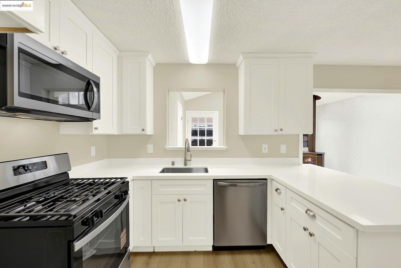 Just Finished Updating, Move-In Condition! This may be the only unit with a Family Room with free-standing stove Off the Kitchen and Dining Room. Kitchen features Quartz Counters, new Cabinets, Gas Stove, Microwave and Breakfast Bar. Conveniently located in the kitchen is a laundry closet for washer/dryer and an 1/2 bathroom. The upstairs consists of an updated bathroom and 2 bedrooms. One Bedroom is larger with 2 closets. There is carport parking behind the unit. Conveniently located off Highway 80, Shopping centers, The bay and more.