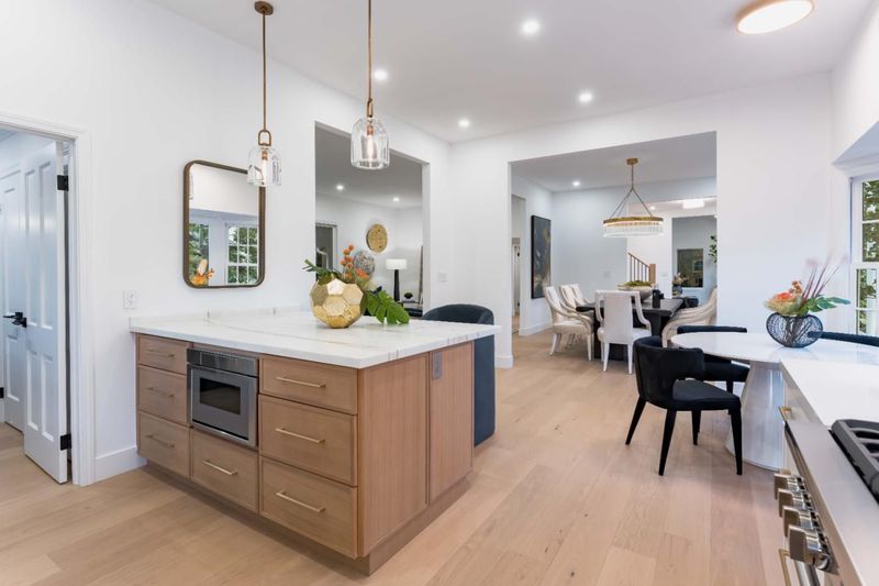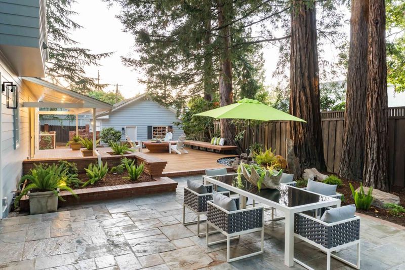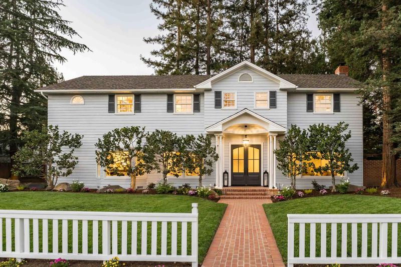 Nestled on a peaceful cul-de-sac on nearly a quarter acre, this completely remodeled (with permits), classic American colonial exudes timeless charm with a lush front garden, brick walkway, and column-framed portico all in a walk to downtown location. Over 3,500 square feet across two sun-filled levels, the refreshed interiors feature hardwood floors, abundant natural light, renovated bathrooms, and updated fixtures. Expansive formal rooms flow to an eat-in kitchen with a brand-new Thermador suite, while a walk-out family room offers an inviting space for everyday living. Five bedrooms include a downstairs guest suite and a primary suite with a flexible-use room. Outside, a covered patio and deck with a built-in fire pit are complemented by a nearby water feature and towering trees for a private retreat. Additional highlights include air conditioning and a two-car garage, just minutes from downtown Los Altos, Shoup Park, Highway 280, and top schools (buyer to verify eligibility).