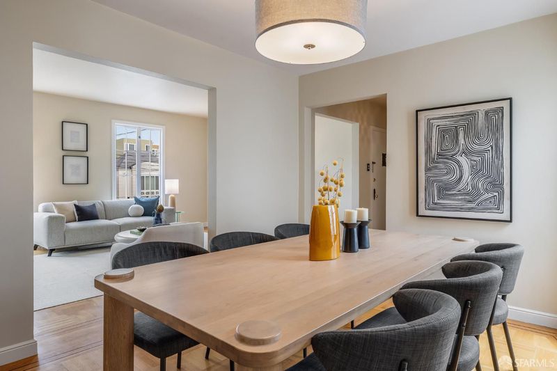 Classic Sunset center patio home with timeless character and modern updates. This 3-bedroom, 2-bath residence features hardwood floors throughout and an elegant formal living room with a corner gas fireplace and elegant paned French-style casement windows that open to a Juliette balcony. The recently remodeled, generously sized kitchen pairs with the dining room to form the heart of the home, while two spacious bedrooms and a updated bathroom complete the main level. The lower level includes a third bedroom, second updated bath, and a large family room that opens directly to a large landscaped yard, perfect for indoor-outdoor living. A generous garage offers abundant storage and laundry. Enjoy nearby shops, markets, and cafes along Noriega & Judah, with Golden Gate Park, Ocean Beach, and Sunset Rec Center just minutes away. Easy access to the N-Judah, 19th Avenue, and Sunset Boulevard makes commuting simple. An ideal mix of charm, space, and location, this home is ready to welcome its next chapter.