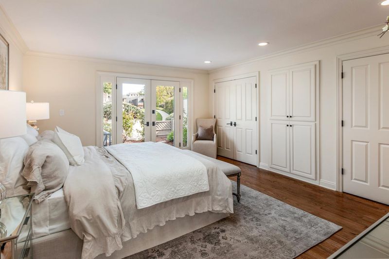 Located in the private, gated Rancho Deep Cliff community of just 65 homes, this beautifully appointed home enjoys spacious living and entertaining spaces, abundant natural light, and serene outdoor space. Throughout the home you will find gorgeous hardwood floors, custom moldings, and a warm, inviting color palette. The living room offers a focal-point gas fireplace with a limestone surround, built-in cabinetry, sliding glass doors to a charming atrium patio, and French doors to the back patio that spans the width of the home with views of the greenbelt and direct access to the community pool. A formal dining room opens to the granite-appointed eat-in kitchen with an extended peninsula counter with seating, casual dining area with a large bay window, and premium appliances including a Wolf gas range. The privately located primary suite has French doors to the back patio and boasts abundant storage in three closets, and a spa-like en suite bath with limestone finishes. The second bedroom, or ideal home office, has a substantial built-in workstation and a convenient Murphy bed. A fabulous lifestyle awaits with a community pool, gym, clubhouse, tennis courts, meticulously maintained grounds, and private access to miles of hiking trails at Stevens Creek County Park.