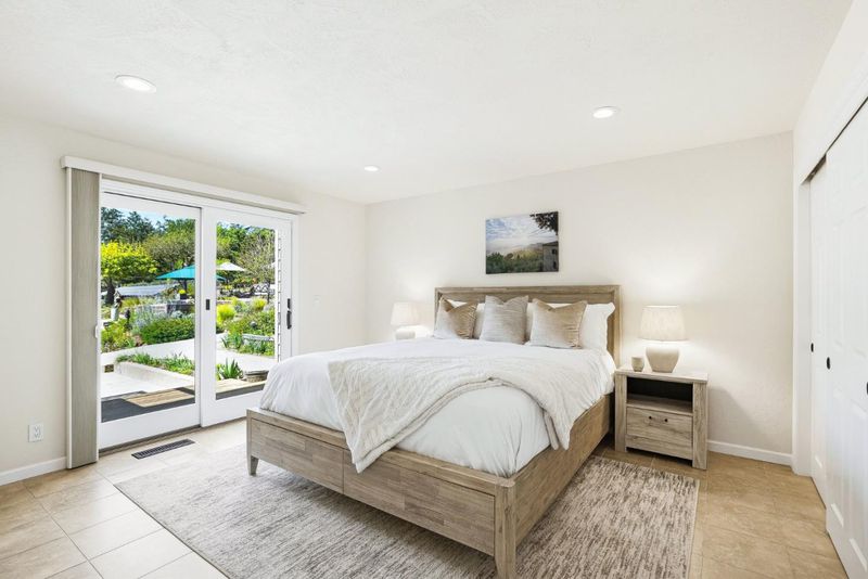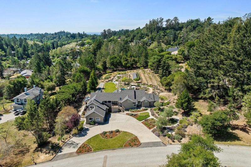 Tucked away in the serene Forest & Meadows community, this beautifully updated home sits on 1.5 acres of privacy, tranquility, and sunlight. As you enter through the custom wood front door, you're greeted by vaulted ceilings, travertine tile, and natural light pouring in through expansive picture windows, drawing your eye to the backyard. The main living areas offer a seamless flow into a variety of spaces designed for both everyday living and entertaining. To the left, the kitchen features a Wolf range and opens to a spacious deck, while the opposite wing showcases a media room with gas fireplace, custom wet bar with beer tap and wine fridge, and built-in cabinetry. Outside, stonework terraces create multiple areas for entertaining alongside a bocce court, grass lawn, rows of lavender, rose gardens, fruit-bearing vines, and raised planter beds evoking the feel of a private retreat at home. The primary suite features dual skylights, walk-in closets, gas fireplace, and an ensuite bath with radiant heated floors, walk-in shower, soaking tub, and garden views. A private deck off the suite offers direct access to the backyard. Additional highlights include a 44-speaker indoor/outdoor sound system, EV-ready three-car garage, and ADU potential. This is Aptos living at its absolute best