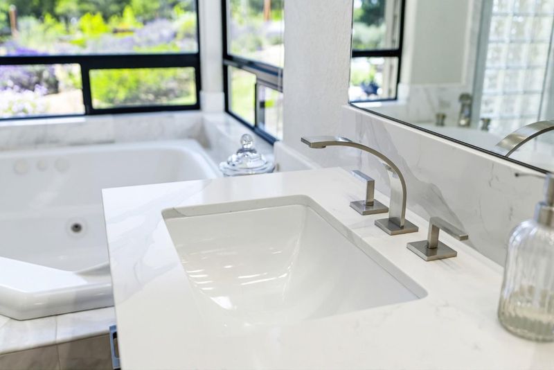 - Double Sinks, Half on Ground Floor, Primary - Oversized Tub, Primary - Sunken Tub, Skylight, Solid Surface, Stall Shower - 2+, Tile, Updated Bath