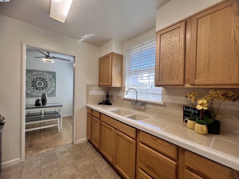 - Gas Range, Tile Counters, Gas Range/Cooktop
