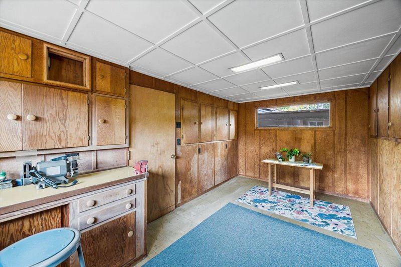 Innately charming, this classic bungalow style home was reimagined to provide gracious space for socializing, cooking with friends or family, working at home and relaxing with privacy. A bespoke kitchen with custom cabinets and yards of counter space, high-end appliances, a breakfast area with TV nook, and room to gather is open to a bright, cozy family room. A "corner office" in the family room has access to the patio. Gleaming oak floors, plantation shutters and custom lighting are marks of attention to detail. House has useful (unfinished) attic and basement space. Special to the property is a detached guest suite with full bath and "private" patio. The detached garage has a separate "vintage" workshop for crafts,hobbies,workout room or whathaveyou. If you are looking for traditional character, enduring design, a convenient location - near Community Center, close to schools and many Palo Alto amenities - this just might be your spot!