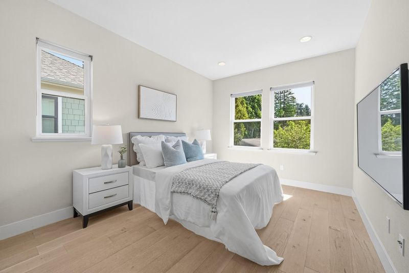 Rare two-story duet in Mountain View with a private side yard and raised garden beds. Tucked away on a quiet cul-de-sac, this well-maintained home offers an open-concept layout with high ceilings, abundant natural light, and a beautifully upgraded kitchen featuring Bosch appliances, a separate range hood, large sink, and a striking waterfall countertop. Custom Shade Store blinds add a polished finish throughout. Upstairs, a spacious landing offers flexible use as a home gym with abundant storage. The master bedroom suite features a private shaded balcony, while the primary bath includes a relaxing soaking tub for a spa-like experience. Two additional bedrooms share a double vanity full bath and a laundry room with sink add everyday practicality. Smart home features such as Nest and Ring and smart locks, and the oversized garage offers ample storage and a Tesla charger. Enjoy close proximity to parks, tennis courts, Caltrain, and Downtown Mountain View, with easy access to Highways 101 , 237 and 85. Conveniently located near Google and Meta, with a Meta shuttle stop near the community.