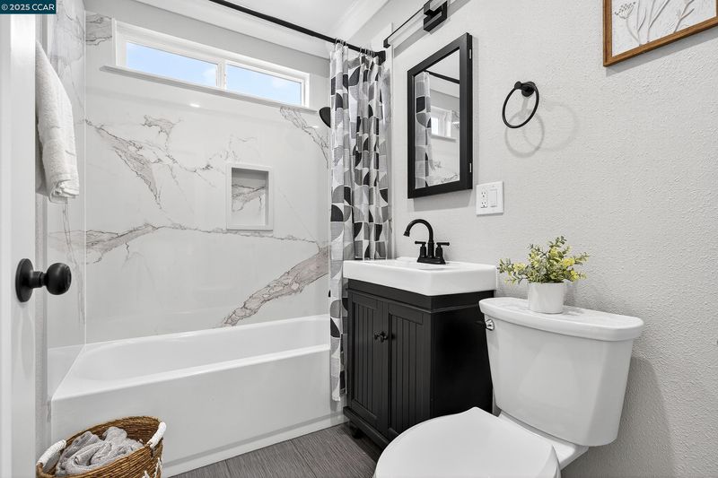 Beautiful Tri-Level with a ton of charm. Remodeled kitchen with new cabinets, quartz counter tops, and new appliances! New laminate & tile floors throughout. New dual pane windows and blinds. Bathroom is completely remodeled & looks fantastic! Third bedroom or office on the lower level. Interior & Exterior freshly painted. Attached garage, spacious laundry area. Nicely landscaped front yard with a large back yard. Home has a Section One Termite Clearance as well as a Roof Clearance.
