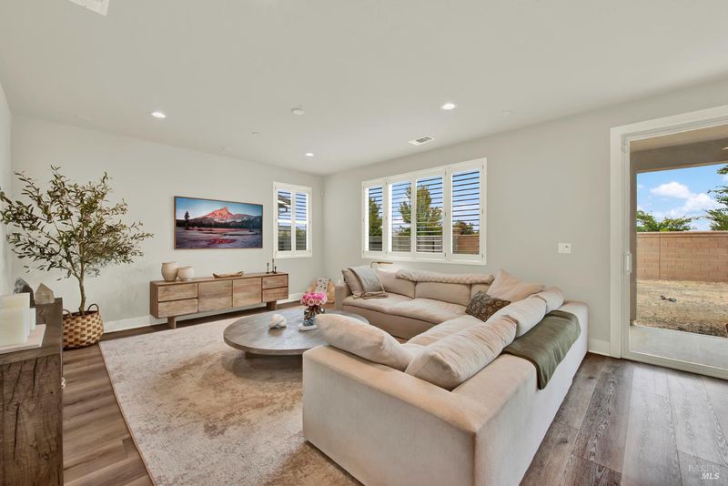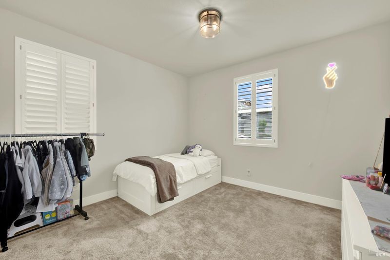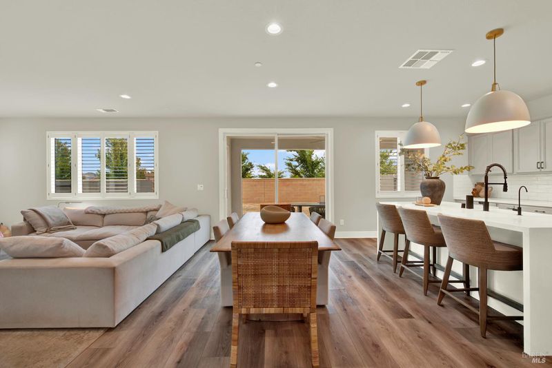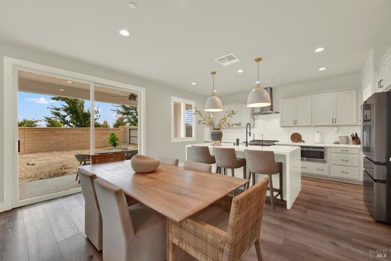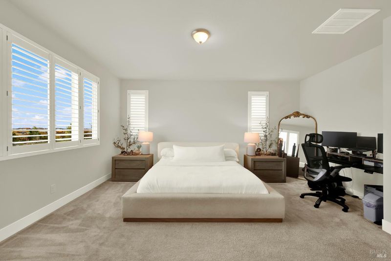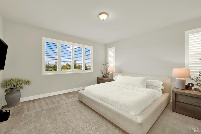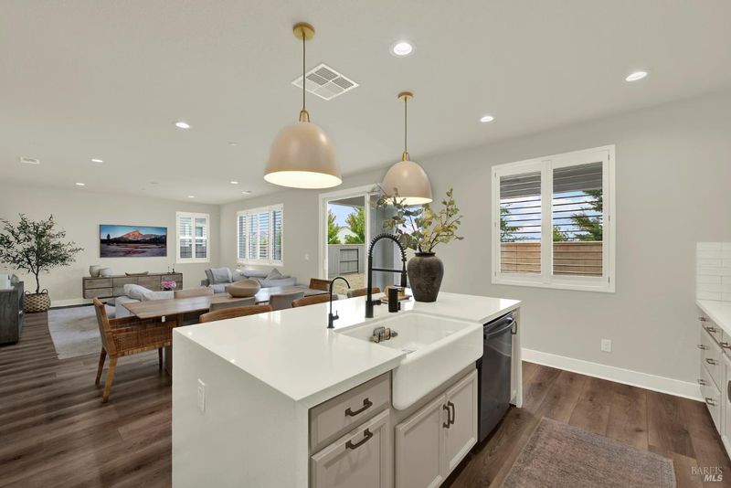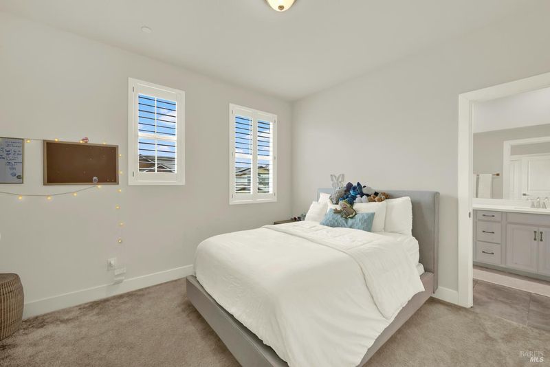 Step into modern luxury with this beautifully designed 4-bedroom home, perfectly blending style, comfort, and modern convenience. A main-level bedroom with a full walk-in shower offers flexibility for guests avoiding stairs or multigenerational living, while the open-concept design fills every space with natural light. The gourmet kitchen is a showpiece with its sleek waterfall island, pendant lights, expansive walk-in pantry, and upgraded appliancesideal for entertaining or everyday life. Upstairs, you'll find three additional bedrooms and two full bathrooms. The primary suite is a true retreat, featuring a soaking tub, a spacious walk-in closet, and elegant finishes. Shutters throughout add both style and functionality. Set in a premium court location, this home offers the added privacy of a large backyard with no rear neighbors, backing to a scenic open park for peaceful views and recreation. The backyard is ready for you to put your personal stamp on it and already includes a large concrete pad and a covered patioperfect for outdoor dining or relaxing. Families will also appreciate the proximity to the highly rated Kairos school. Bright, airy, and thoughtfully upgraded, this home is move-in ready and sure to impress at every turn. No HOA in Brighton Landing.