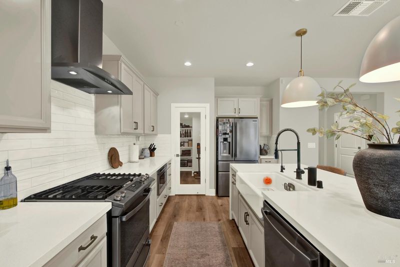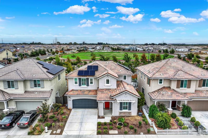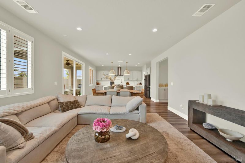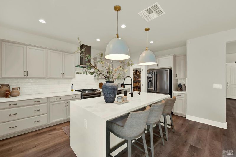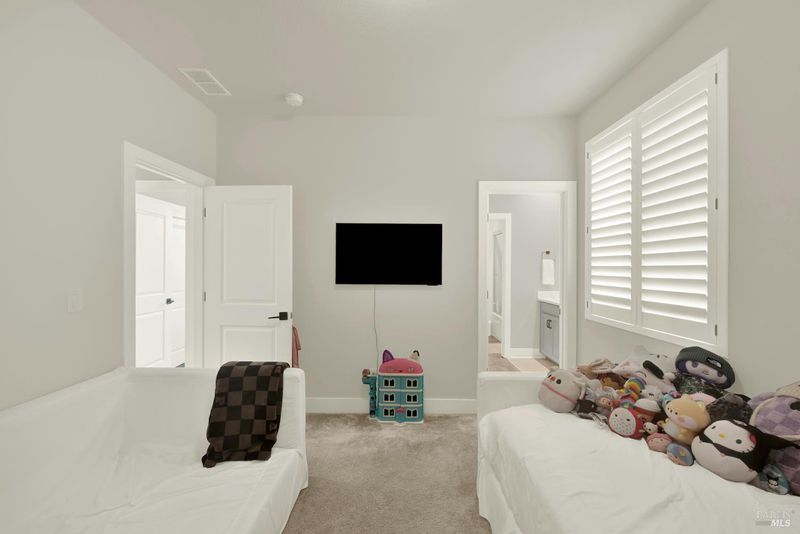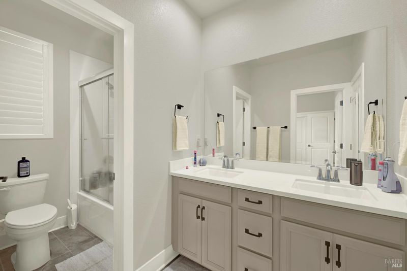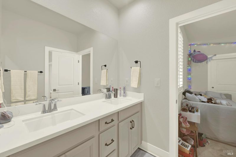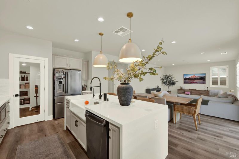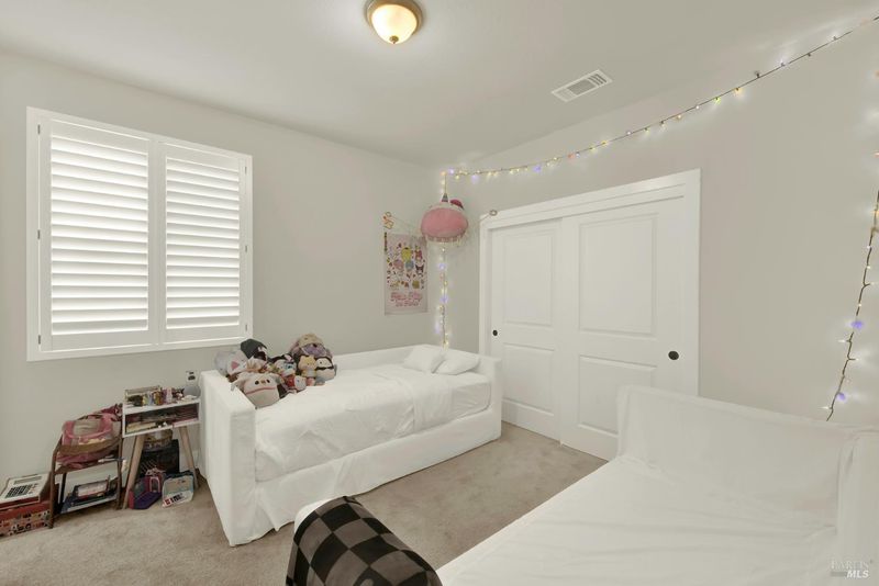 Step into modern luxury with this beautifully designed 4-bedroom home, perfectly blending style, comfort, and modern convenience. A main-level bedroom with a full walk-in shower offers flexibility for guests avoiding stairs or multigenerational living, while the open-concept design fills every space with natural light. The gourmet kitchen is a showpiece with its sleek waterfall island, pendant lights, expansive walk-in pantry, and upgraded appliancesideal for entertaining or everyday life. Upstairs, you'll find three additional bedrooms and two full bathrooms. The primary suite is a true retreat, featuring a soaking tub, a spacious walk-in closet, and elegant finishes. Shutters throughout add both style and functionality. Set in a premium court location, this home offers the added privacy of a large backyard with no rear neighbors, backing to a scenic open park for peaceful views and recreation. The backyard is ready for you to put your personal stamp on it and already includes a large concrete pad and a covered patioperfect for outdoor dining or relaxing. Families will also appreciate the proximity to the highly rated Kairos school. Bright, airy, and thoughtfully upgraded, this home is move-in ready and sure to impress at every turn. No HOA in Brighton Landing.