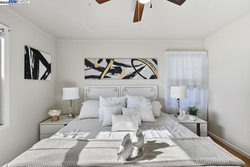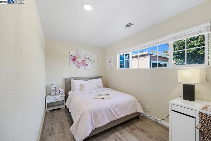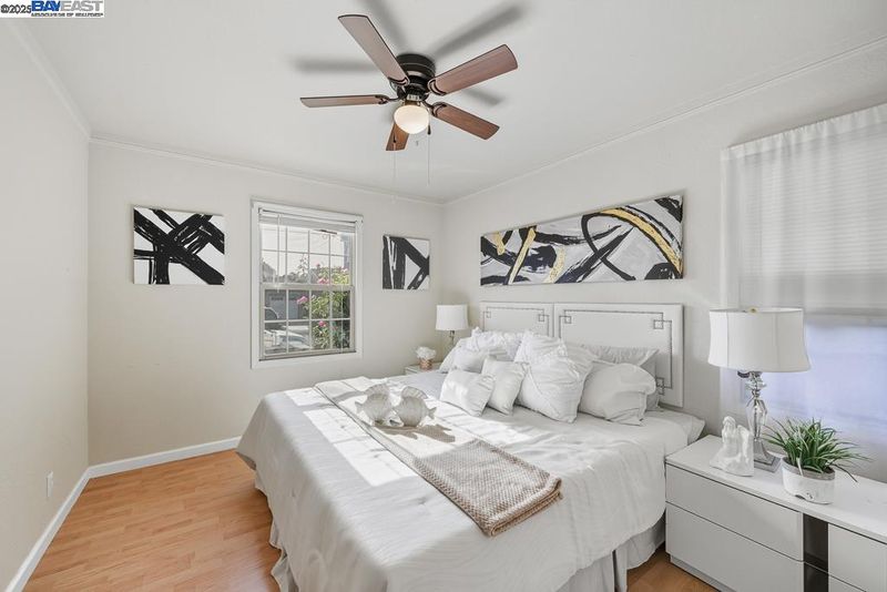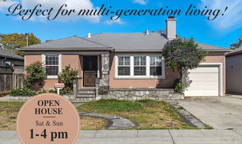 Perfect for multi-generation living! This 3 bed/3 bath single-family home in the desirable San Lorenzo Village offers plenty of space and flexibility. The front portion features 2 bedrooms, 1 bathroom, a spacious living and dining room, and an open kitchen. Step through the connecting door to discover the back portion with a wet bar and breakfast area, a cozy family room, a private bedroom suite, plus 2 bonus rooms for office, hobby, or guest use. The backyard includes a sturdy enclosed shed—ideal for storage or a home office—along with a decent-sized yard for gatherings or gardening. Additional highlights include hardwood flooring throughout and a one-car garage. Don’t miss this unique opportunity to make it your own!
