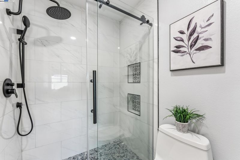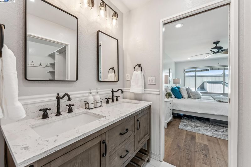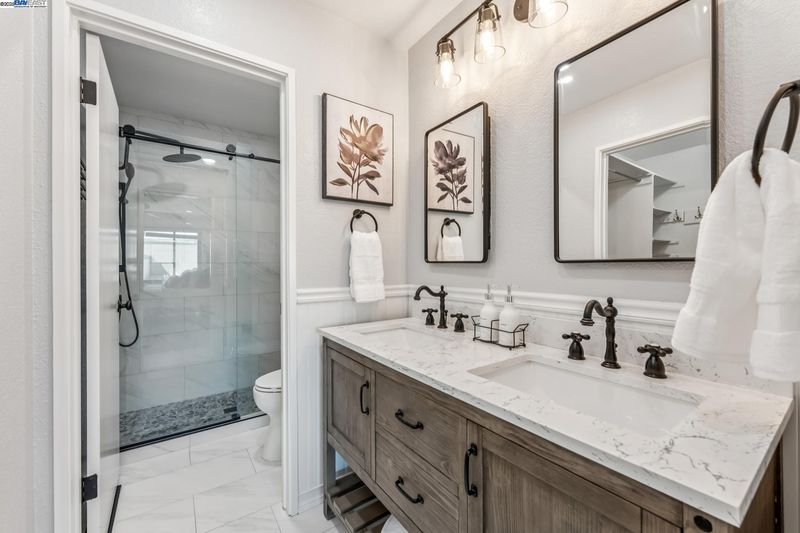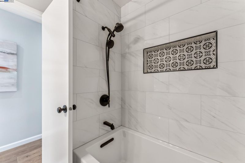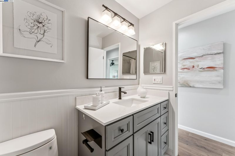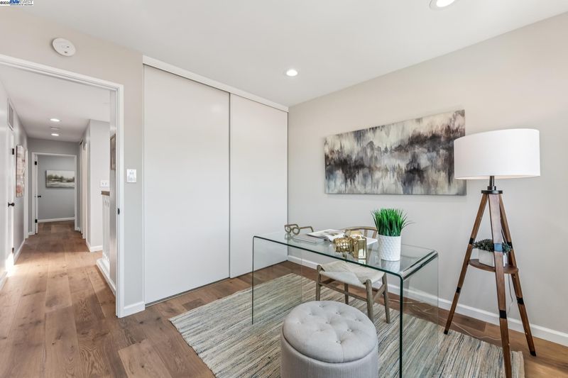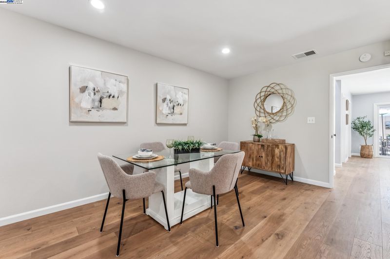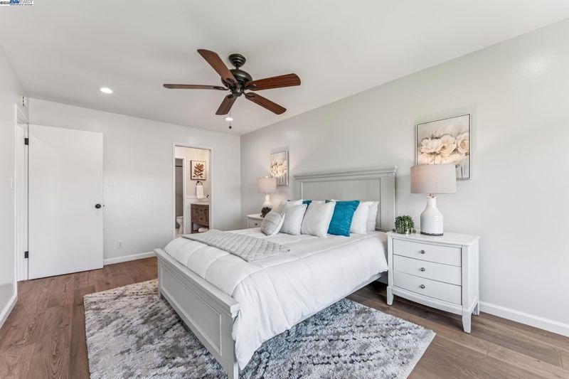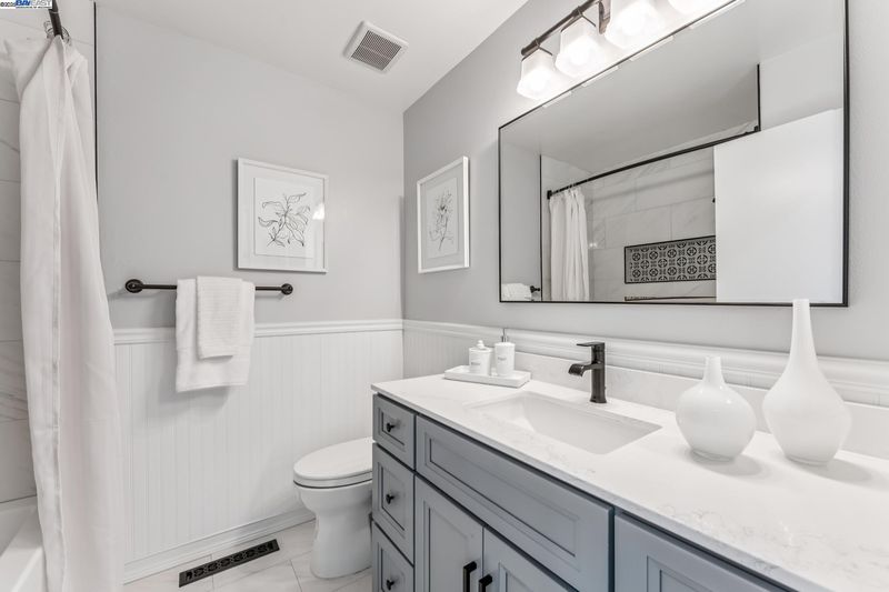 Beautifully updated 4BR/2.5BA townhome in Alameda’s Bay Farm community. This spacious home features engineered hardwood floors throughout, recessed lighting, dual-paned windows, and fresh interior paint. The open living and dining areas are anchored by a custom redwood fireplace mantel, while the eat-in kitchen offers pendant lighting, pantry, counter seating, and newer appliances. A private stamped-concrete patio extends the living space outdoors. Upstairs, the primary suite boasts a remodeled bath with custom tile, waterfall shower, dual-sink vanity, and farmhouse paneling. The guest bath was also fully updated with a soaking tub, new tile, vanity, and fixtures. A remodeled half bath and laundry room with washer/dryer are conveniently located downstairs. Additional highlights include a 2-car garage, new patio screen, and community pool/clubhouse just steps away. Situated across from a greenbelt and close to top-rated schools, parks, shoreline trails, shopping, and the SF ferry — this move-in ready home is a must-see!