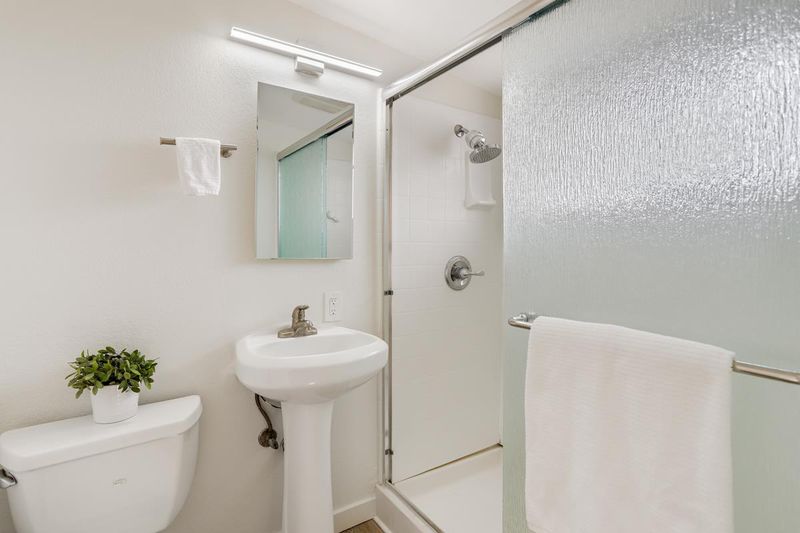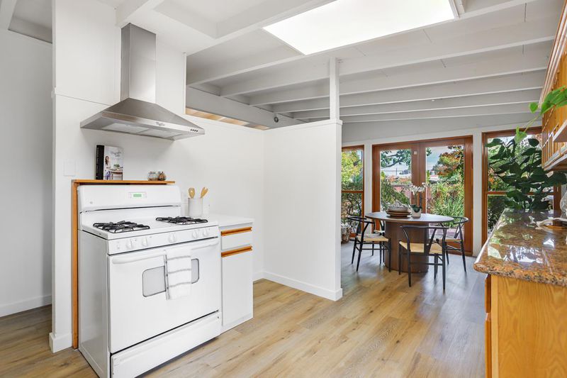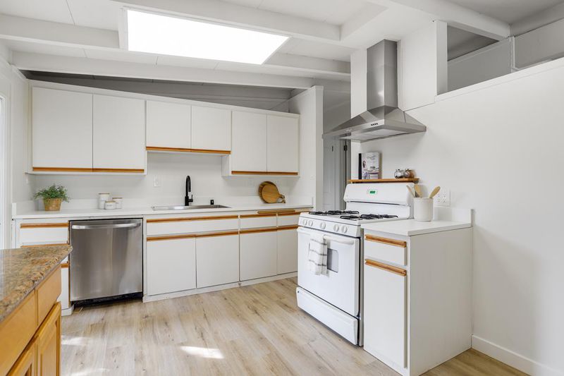 Step inside this impeccable mid century modern Santa Clara home (converted from 4 bedrom home can be easily converted back to 4 bedrooms). The bright & Spacious open living room with pitched ceiling that enhances the sense of spaciousness. The kitchen is a delight, offering a sunlit workspace with ample countertops for your culinary needs. Primary suite provides a quiet retreat with private bath. In-unit laundry adds everyday convenience. The home has an oversized bedroom with 2 closets & can be used as a flexible space, perfect for a home office, gym or converted back to 4 bedrooms. Outdoor living is a highlight of this property. The front courtyard is a serene retreat, fully fenced, complete with pavers & featuring graceful Japanese maple trees. The backyard is an entertainer's dream, boasting a spacious deck with built-in seating & patio area with pavers. Mature trees provide shade & a sense of privacy, creating the perfect backdrop for gatherings or quiet moments. The home also features one car garage with automatic opener, storage cabinets, central heating/AC, dual pane windows & LVP flooring throughout. Conveniently situated near shopping, commute routes & major tech companies like Apple and Nvidia. Easy walking distance to beautiful Homeridge Park & Sutter Elementary.