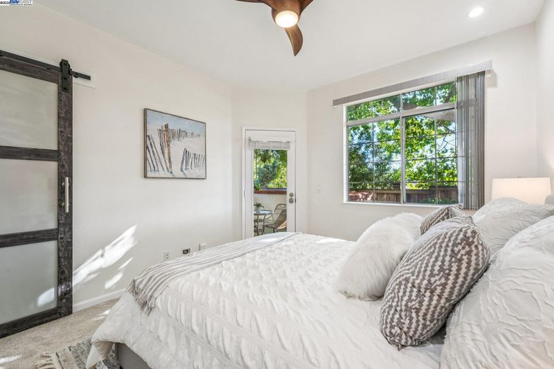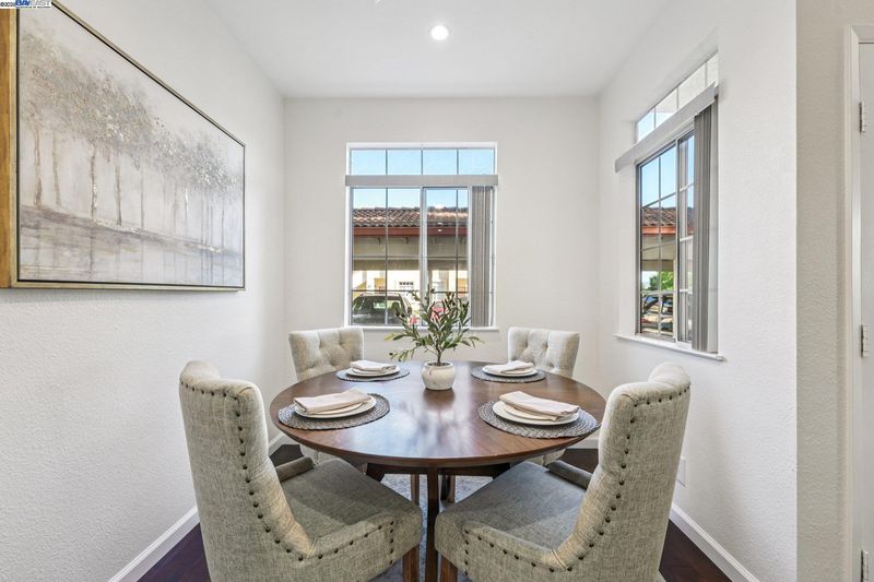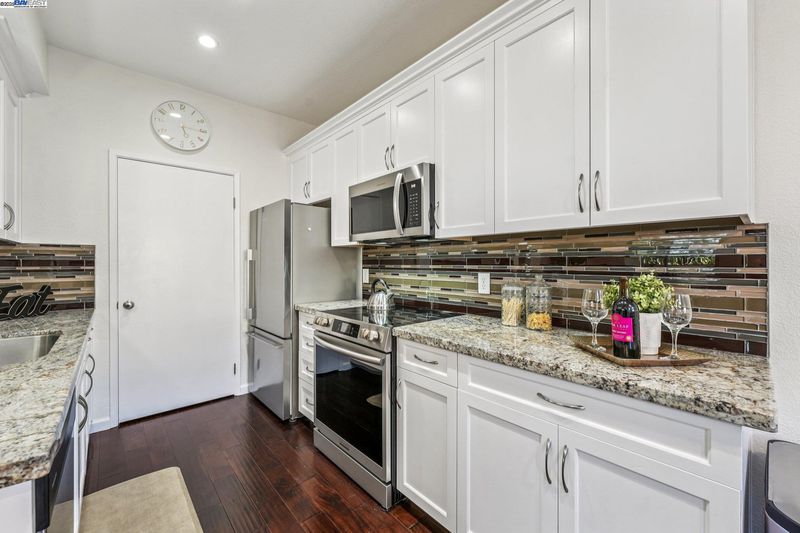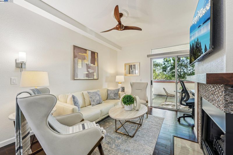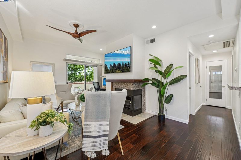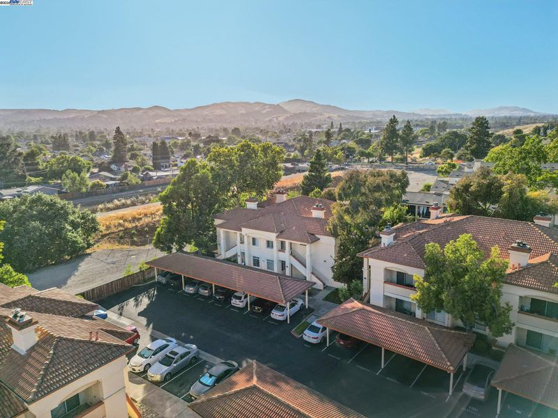 Private and serene, this Mediterranean-style beauty blends comfort with modern flair. Enjoy stunning skyline sunset views from your spacious outdoor patio—perfect for relaxing or entertaining. This desirable lower-level, corner end-unit features wood floors throughout, an open living area, and a beautifully updated kitchen with granite countertops, new cabinetry, and stainless steel appliances. The primary suite boasts a generous walk-in closet, and the convenience of in-unit laundry adds to the ease of everyday living. Includes a dedicated covered end parking stall directly in front of the unit, plus ample guest parking. Prime location within the complex and close proximity to BART, 580/680 freeways, shopping, dining, and local activities. HOA amenities include a clubhouse, BBQ area, volleyball court, and two sparkling swimming pools. A true 10+—don’t miss this opportunity to live in a vibrant and welcoming community! Open house 1 to 4 pm SAT & SUN