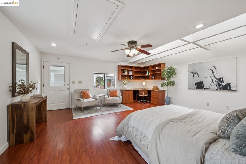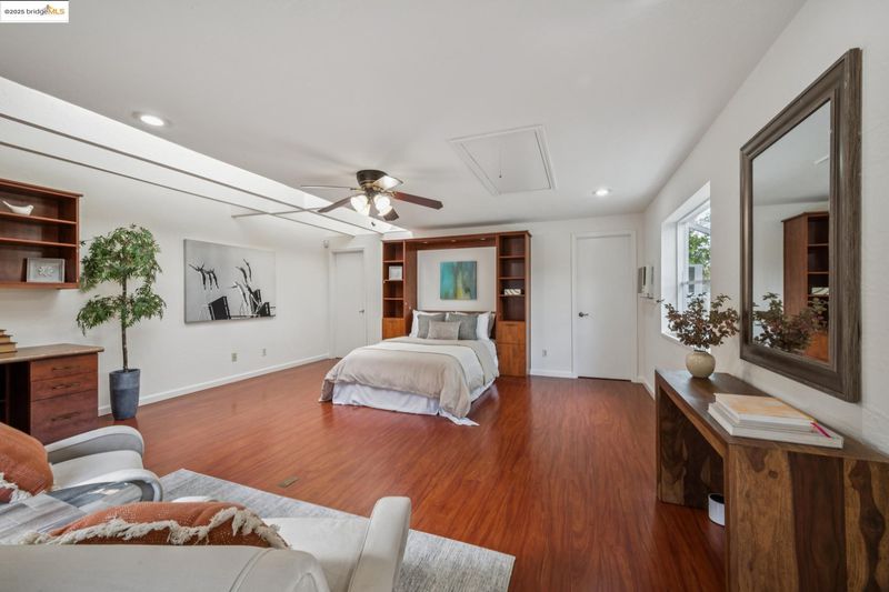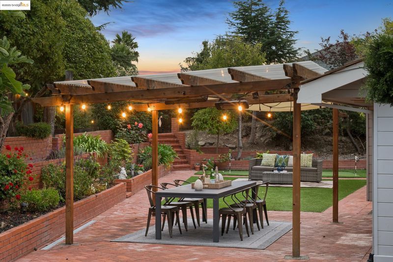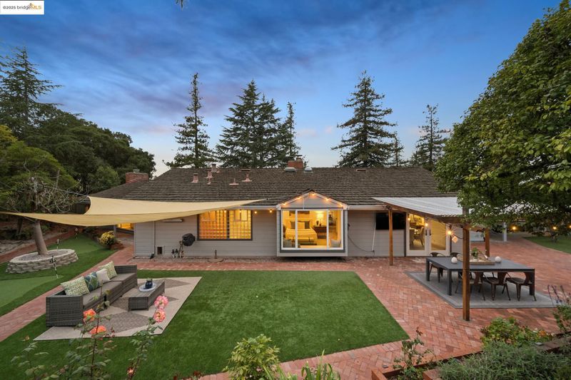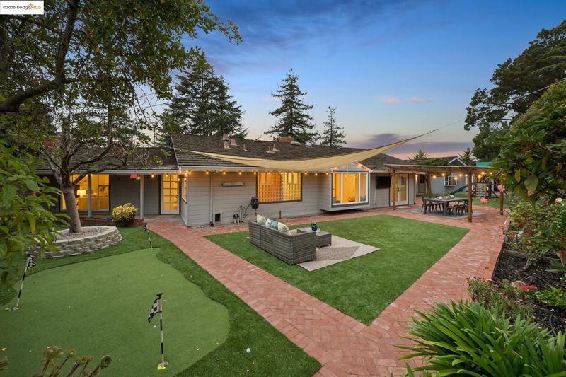 Rare opportunity to own this sunny serene private 60’s Rancher Chabot Park estate. Stunning single level home w/ unlimited opportunities! The ideal entertainer’s dream property sitting on a scenic sun drenched picture perfect lot above the street! Enjoy the endless in & outdoor space to entertain, garden & let your hobbies/vision take hold in this expansive property! The main home consists of 3 beds, 2 baths w/ a primary en suite bath. Updated throughout w/ an open concept kitchen/pantry, mudroom, dining room, family room w/ vaulted ceilings. Access from living/dining room to an expansive outdoor dining room & sitting area, complete w/ putting greens, gardens & places to play & roam while enjoying morning & evening meals. Additionally the home has a detached private In-law/adu space w/ ensuite bathroom/walk-in-closet, Murphy Bed & additional attic storage. There is also a detached space great as an office or home gym.