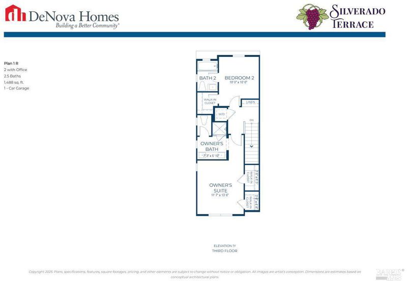 Easy wine country living, walk or bike to spas, restaurants or winetasting rooms, with boutique shops along the way. This flat features a primary bedroom with ensuite and 2 closets, a secondary bedroom and bath, with a large open plan kitchen, dining and living room, private deck and a one car garage. There is still time to personalize your home.