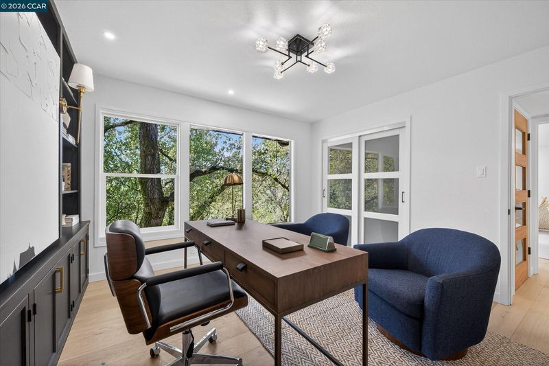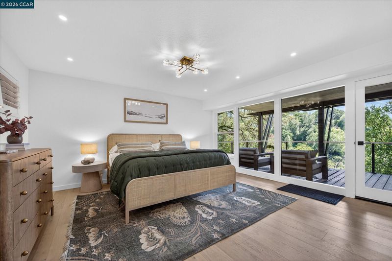 Fully remodeled from top to bottom, this stunning 4 bedroom, 3.5 bath Orinda Country Club mid-century retreat offers approximately 2,559 sq ft of beautifully updated living space on a private .39 acre lot surrounded by majestic heritage oak trees and classic Orinda views. The light-filled open main level features soaring ceilings, a dramatic marble-faced fireplace, expansive picture windows, new wood flooring, and an updated kitchen with stainless steel appliances, all opening to expansive decks with a barbecue area for seamless indoor-outdoor living. The private primary suite includes its own deck and beautifully appointed bath with large windows framing the natural landscape. Additional highlights include a hidden wine cellar with adjacent storage, level front yard, smart lighting with touch-activated stair illumination and centralized controls, and a two-car garage. Tucked away yet minutes to Orinda Country Club, BART, Highway 24, the Village, and top-rated Orinda schools including Sleepy Hollow Elementary, Orinda Intermediate, and Miramonte High School.