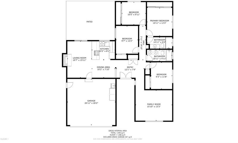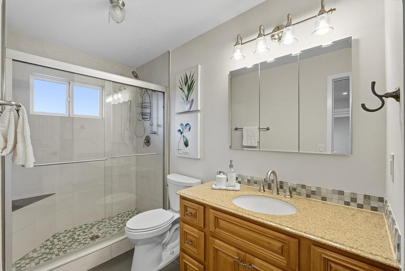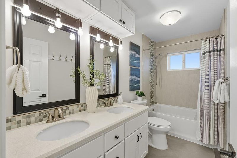 - Double Sinks, Primary - Stall Shower(s), Shower over Tub - 1, Tile, Updated Bath