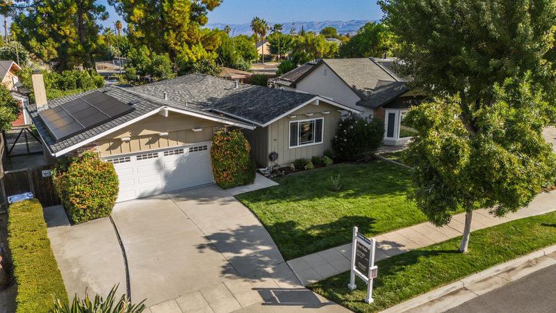 Welcome to 737 Los Huecos Drive, a beautifully updated single-story home nestled in one of Blossom Valleys most desirable neighborhoods. With scenic foothill views and true pride of ownership throughout the community, this 4-bedroom, 2-bath residence offers a thoughtful blend of comfort, style, and convenience. The freshly painted interior spans 1,530 square feet and showcases a remodeled kitchen with quartz countertops, stainless-steel appliances, and ample cabinetry. The kitchen/family room combo provides the perfect gathering space and seamlessly flows out to the covered patio and backyard, creating an ideal setting for entertaining or relaxing. Both bathrooms feature sleek, timeless finishes, while recessed lighting, central A/C with Nest thermostat, a 5-year-old roof, and a fully owned Tesla solar system add efficiency and peace of mind. Outside, enjoy a 6,100 square foot lot with lush landscaping and numerous mature fruit trees for year-round enjoyment. Close to Discovery Charter School, scenic foothill trails, Almaden Lake Park, Westfield Oakridge Mall, and Highways 85 & 87, this home combines modern upgrades with everyday convenience in a truly special neighborhood.