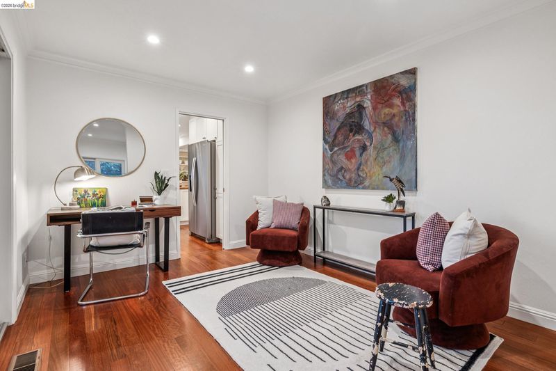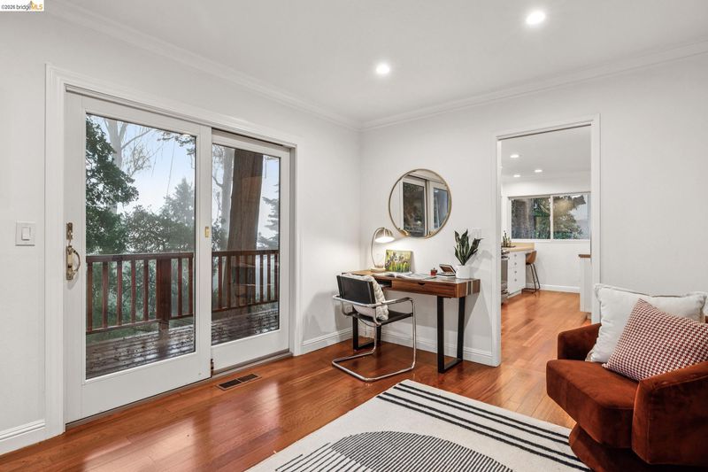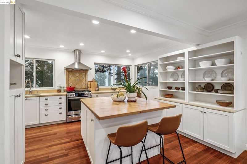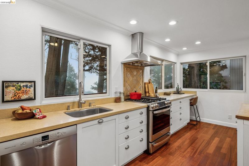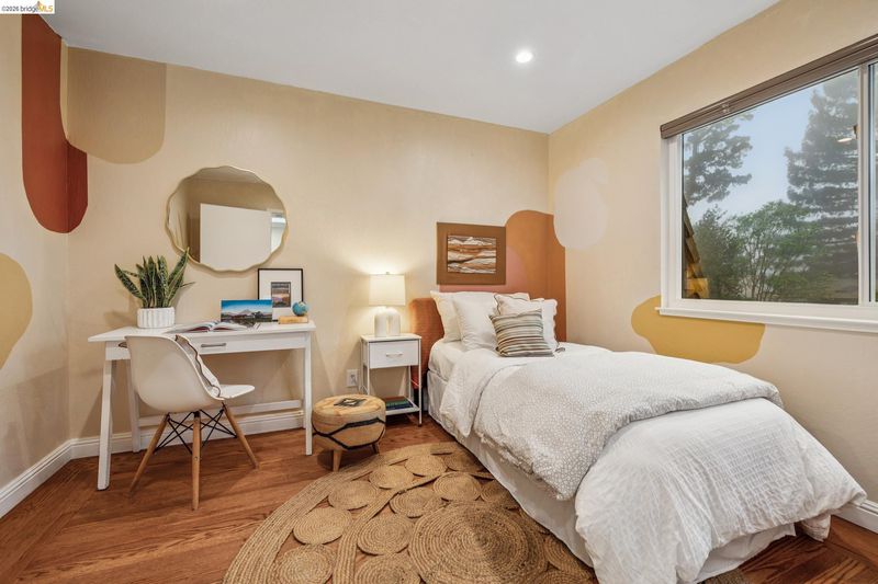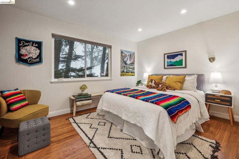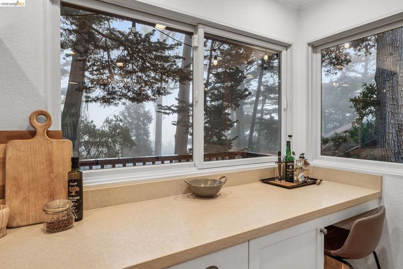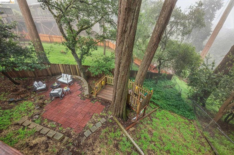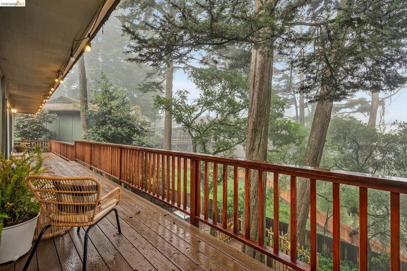 18 North Circle is a rarity in the Oakland Hills. Its situation on a large, mostly level cul-de-sac, as well as a level front yard with charming picket fence make it feel quite traditional for a hills house. The living room has a fireplace and direct access to the wrap-around deck for outdoor living. The eat-in kitchen is oversized with a large island, a pantry, and windows on three sides to let in the light. The primary bedroom has an updated marble bathroom with step-in shower and a walk-in closet. Three more bedrooms offer great flexibility. The side yard is terraced and ready for your kitchen garden, while the backyard has a patio and delightful play structure. There are contemporary upgrades like air conditioning and a tankless water heater, and extra parking for your camper or RV. Just up the street from the Hills Swim and Tennis Club, this is your tranquil home in the hills.