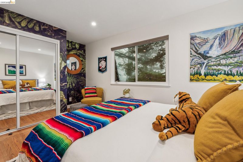 18 North Circle is a rarity in the Oakland Hills. Its situation on a large, mostly level cul-de-sac, as well as a level front yard with charming picket fence make it feel quite traditional for a hills house. The living room has a fireplace and direct access to the wrap-around deck for outdoor living. The eat-in kitchen is oversized with a large island, a pantry, and windows on three sides to let in the light. The primary bedroom has an updated marble bathroom with step-in shower and a walk-in closet. Three more bedrooms offers great flexibility. The side yard is terraced and ready for your kitchen garden, while the backyard has a patio and delightful play structure. There are contemporary upgrades like air conditioning and a tankless water heater, and extra parking for your camper or RV. Just up the street from the Hills Swim and Tennis Club, this is your tranquil home in the hills.