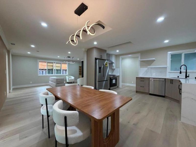 Welcome to this spacious 4-bedroom, 3-bathroom home in the vibrant city of Sunnyvale's Ponderosa Park neighborhood. With a generous 1,582 sq ft of living space, this property offers a comfortable and modern lifestyle. The kitchen is a chef's dream, featuring quartz countertops, a gas oven range, dishwasher, garbage disposal, and a skylight that fills the space with natural light. The family room, dining area & outdoor gazebo provide a perfect setting for family & friends gatherings. This home includes 2 primary bedrooms with updated bathrooms. The flooring throughout is engineered wood, enhancing the home's warmth and style. Enjoy cozy evenings by the fireplace, and benefit from central AC and heating for year-round comfort. Practical amenities include a 2-car garage with EV outlet, laundry facilities with gas dryer hookups in the garage, and energy-efficient features such as double-pane windows and Energy Star appliances. Located in the Santa Clara Unified School District, this property is an excellent choice for those seeking a family-friendly environment. It is also 1 block away from Ponderosa Park.