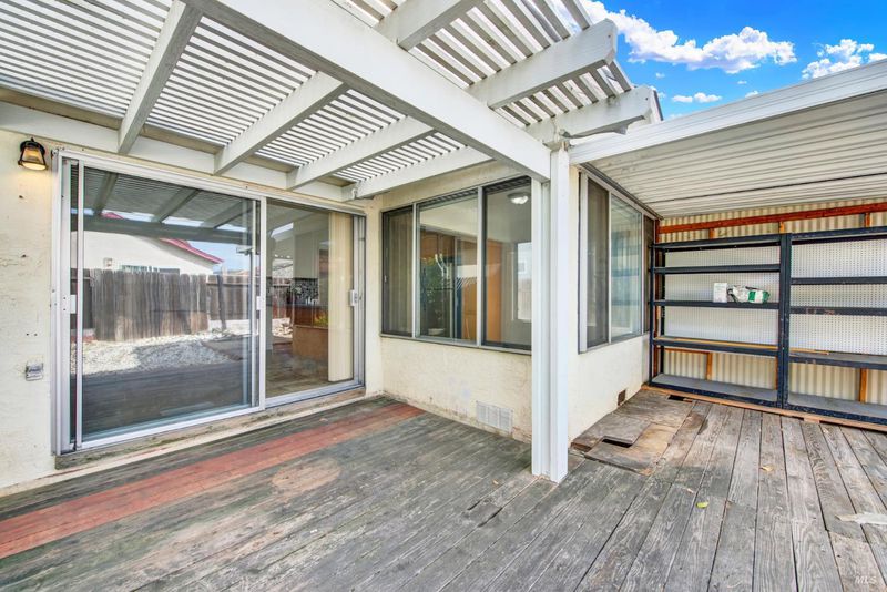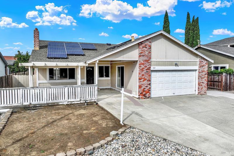 Whether you're an investor, DIY enthusiast, or a buyer with vision, this property is priced to impress and ready for your creative touch. This rare gem is a single-story home offering over 2,100 square feet of living space, perfect for those seeking room to grow and a project to make this home yours. Court location, featuring 5 bedrooms, 2 bathrooms, Corian countertops in kitchen has tile floors which includes all appliances and eat-in dining area, inside laundry includes washer and dryer, master suite has dual closets and an ensuite with convenient shower stall, updated furnace/AC and water heater. Welcoming front porch ideal to enjoy year-round seasons as well as covered rear porch, low-maintenance yard with fruit trees. Unbelievable energy-saving PPA solar system keeps utility costs low, upgraded wood-like floors, fireplace in front living room, inviting dining room and vaulted ceilings in family room. Great for commuters using I-80, Travis AFB, close to shops, fitness club, Paradise Valley Golf Course and more. The possibilities are endless!