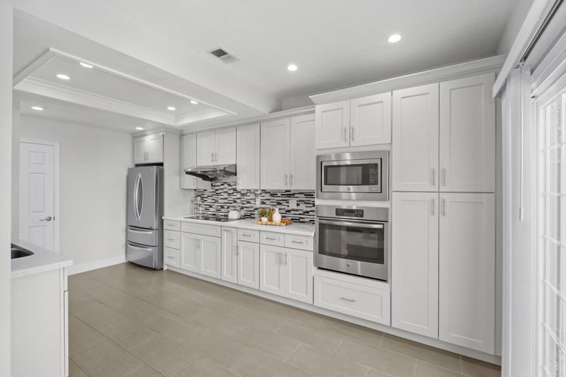 - Cooktop - Electric, Countertop - Granite, Dishwasher, Freezer, Hood Over Range, Microwave, Oven - Built-In, Oven - Electric, Refrigerator