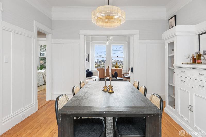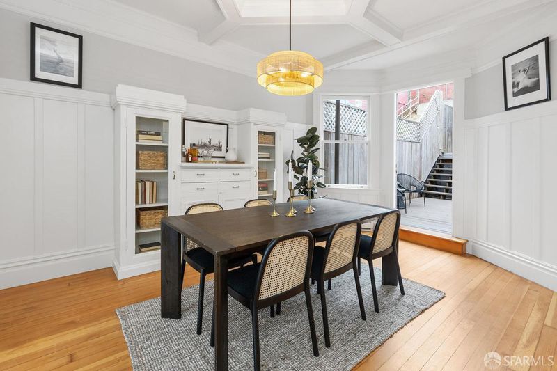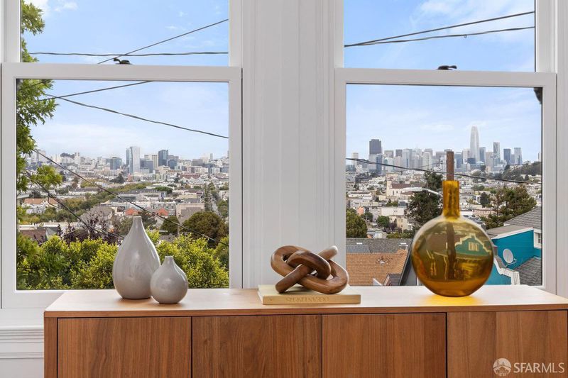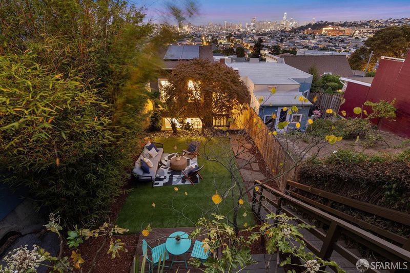 Welcome to 1651 Treat, set on the prime Bernal North Slope just off Precita Park. This tastefully updated Edwardian blends classic craftsmanship with easy modern living: 3 bedrooms, 1 oversized bath and sweeping views from the living room, primary, and top-floor third bedroom. The bright skylit kitchen features marble counters, abundant storage, and a classic range. A formal dining room opens to a sunny deck that steps down to a south-facing, leveled backyard, ideal for everyday lounging or effortless entertaining. Original details shine throughout: elegant wood floors, box beam ceilings, wainscoting, and pocket doors, all anchored by panoramic outlooks from downtown to the Marin Headlands. Practical perks include a one-car garage, solar panels, EV charger, generous storage, laundry, and an additional flex space to create & tinker. Set on an RH-2 lot with rare second frontage on Ripley, the property offers meaningful future upside. The location is a commuter's dream with close access to 101 and 280, plus proximity to BART and shuttle routes. Moments to Precita Park and neighborhood cafes, this home delivers daily ease, enduring character, and a front-row seat to the city's changing light.