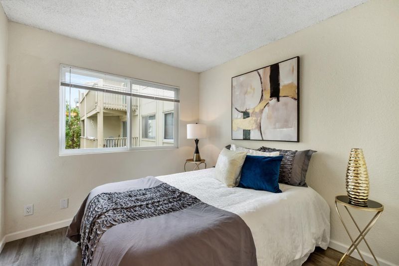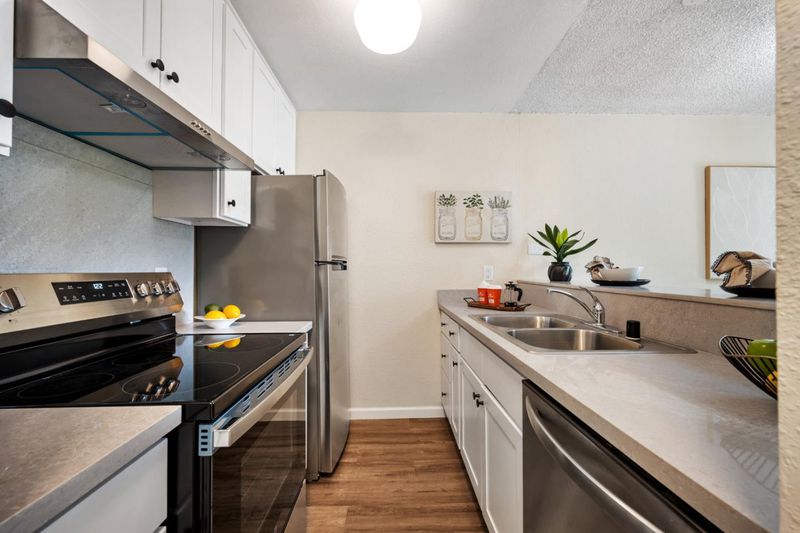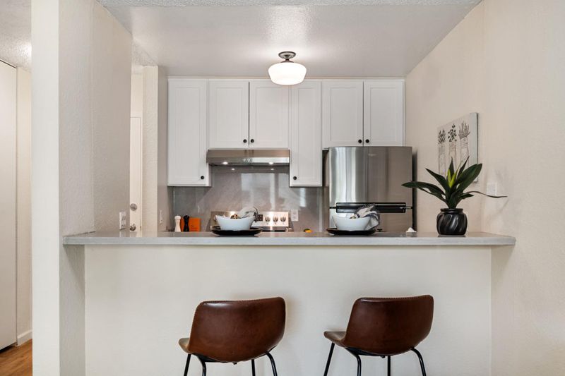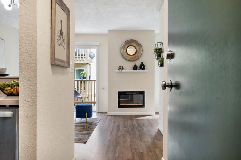 Cozy 2nd-floor studio with sleep alcove, freshly painted and featuring luxury vinyl plank flooring. Enjoy a beautifully remodeled kitchen with stainless steel appliances, quartz countertops, and sleek new cabinetry. The living area is warmed by an electric fire insert, and a walk-in closet with custom organizers adds plenty of storage. Step out onto your spacious deck, perfect for barbecues or relaxing outdoors. Conveniently located close to the laundry room, elevator, and exterior stairwell, this home overlooks the peaceful interior courtyard. This unit includes 1-car parking and access to resort-style community amenities: pools, spa, tennis courts, basketball court, dog run, gym, and clubhouse. Ideally situated near major highways, shopping, restaurants, and more!
