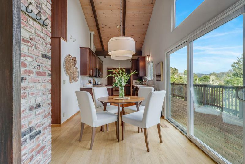 This two-story Aptos home blends character, forest outlooks, and everyday convenience just minutes from town. A bright remodeled kitchen with retro tile welcomes the morning light and flows into a living room defined by open-beam ceilings and a classic brick fireplace that makes an inviting centerpiece. Each of the three bedrooms offers its own sense of individuality, while large windows frame lush greenery that brings the outdoors into focus throughout the home. Two separate decks extend the living space, one off the main kitchen and living area, and another on the lower level. Theyre perfect for barbecues, morning coffee, or simply relaxing among the trees. A second fireplace downstairs enhances the cozy atmosphere during cooler months, while also creating flexible options for work, play, or entertaining. With thoughtful design details, natural surroundings, and a functional layout across two stories, this property delivers both style and practicality. Local coffee shops, grocery stores, and the best of Aptos are just a short drive away, offering a lifestyle that combines comfort at home with easy access to the coast and community amenities.