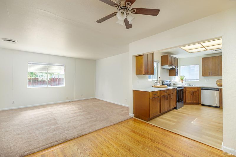 Enjoy this beautifully updated home & fall in love with its open floor plan, nestled in a quiet neighborhood in northern Vacaville. With 3 spacious bedrooms & 2 full bathrooms, this home offers the perfect blend of charm, comfort, & convenience. Step inside to find hardwood floors throughout the main living areas, complemented by a cozy wood-burning fireplace that anchors the living room, making it ideal for relaxing nights in. The primary bedroom & family room feature brand-new carpet, adding fresh comfort where it counts. The kitchen was remodeled this year, showcasing stylish new cabinets, stainless steel appliances, & elegant stone countertops. Both bathrooms were also updated this year & the home shines with fresh interior & exterior paint. Additional recent upgrades include a newer water heater & a roof replacement in 2023, offering peace of mind for years to come. Enjoy a smart, efficient layout that offers flexibility for anyone seeking single-story living. Outside, the private backyard features two patios, perfect for entertaining or unwinding outdoors. This home is ideally located just a few blocks from Vacaville High School & only 5 minutes from downtown Vacaville, where you'll find a variety of excellent restaurants & shopping. Don't miss this opportunity