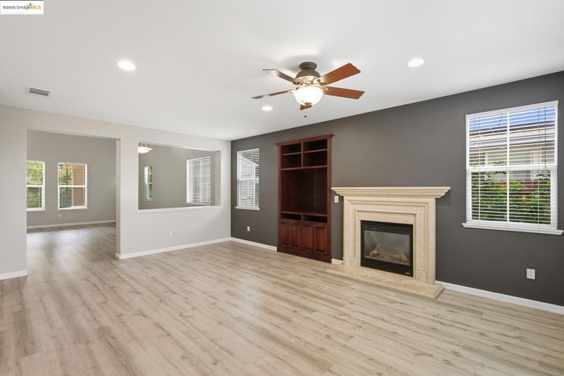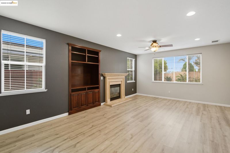 Welcome to the ultimate entertainer’s home! Beautifully landscaped and low-maintenance, this property is perfect for hosting friends and family all football season long. Featuring leased solar, numerous upgrades, and no rear neighbors, this home truly has it all. Step inside to soaring vaulted ceilings and brand-new LVP flooring throughout the main level. The family room boasts a striking stone-accented fireplace with a built-in entertainment center, creating the perfect gathering space. The gourmet kitchen is a chef’s dream, complete with an oversized island designed for cooking and entertaining. The standout feature is the downstairs junior suite with its own private bathroom, in addition to a separate half bath on the main floor. Upstairs, you’ll find a versatile den/bonus room ideal as a kids’ playroom or home office. The spacious primary suite offers a double-door entry, abundant natural light, and a private en-suite bath. The backyard is designed for easy living with turf and a spacious concrete patio for low-maintenance enjoyment. Fire up the grill on the built-in outdoor kitchen, complete with counter space and a mini fridge—perfect for entertaining. Plus, there’s already a dedicated hookup for a hot tub, making this yard the ultimate retreat.