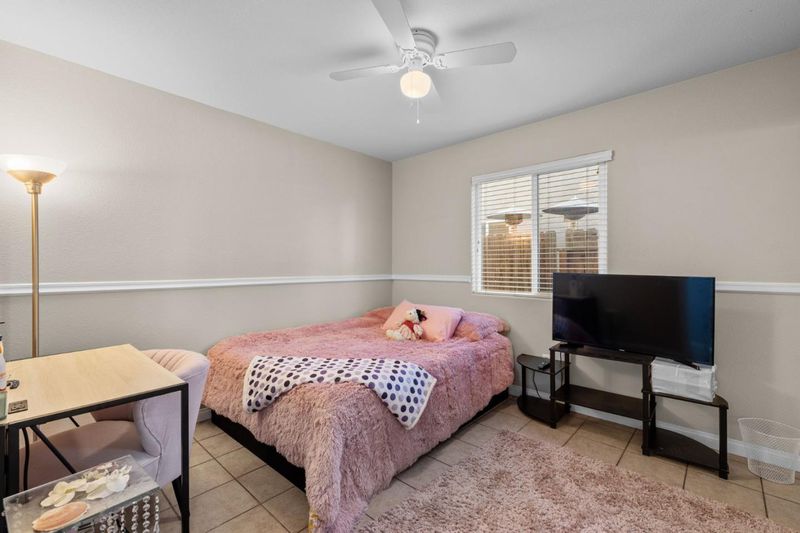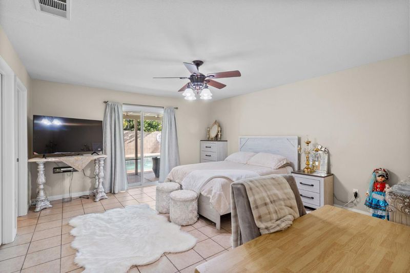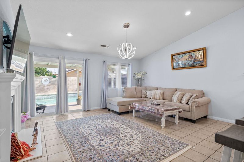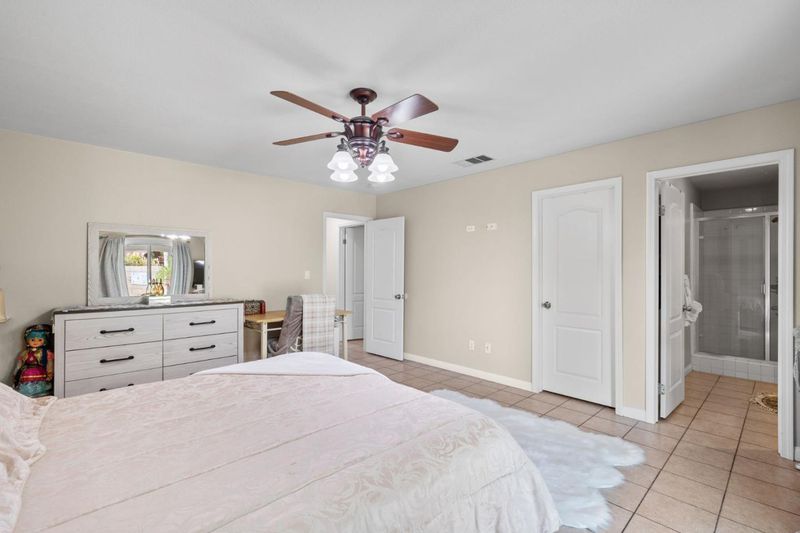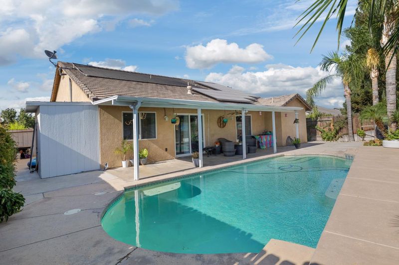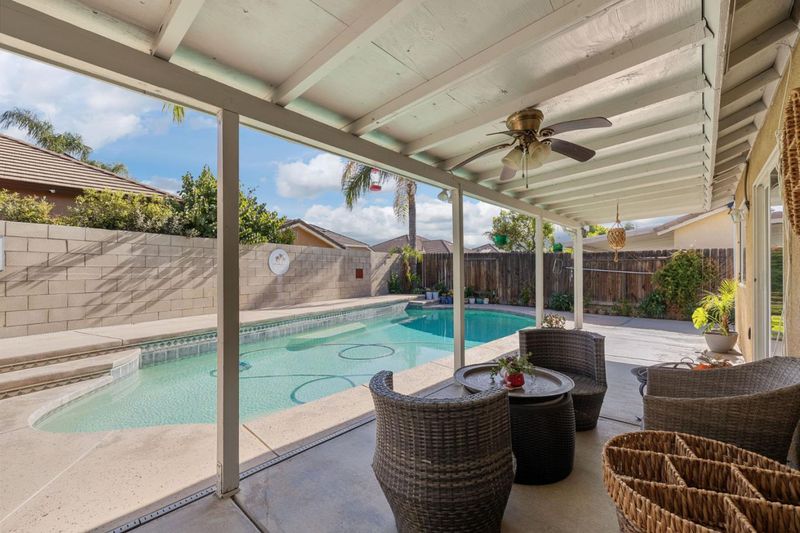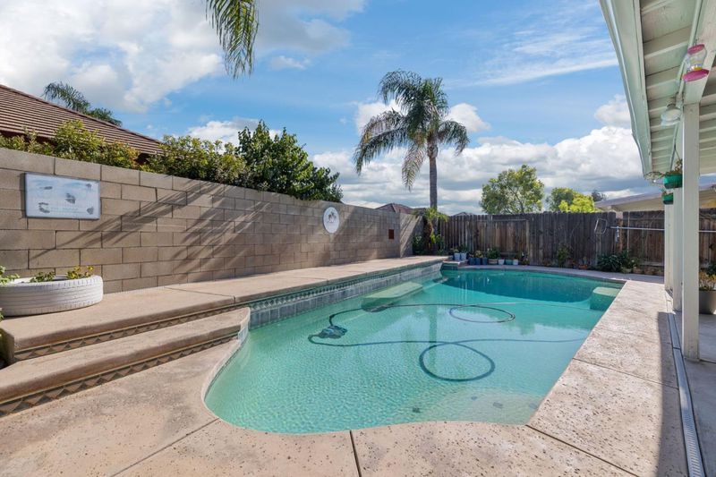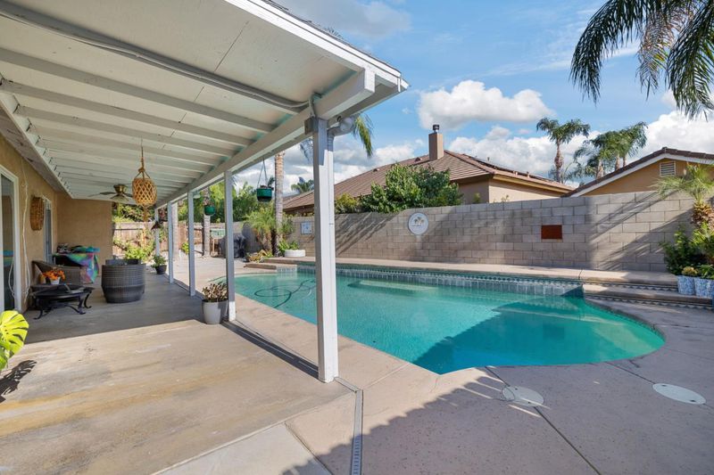 Upon entering this lovely 3 bedroom, 2 bath home, you'll be welcomed by high ceilings and a spacious formal living room that seamlessly transitions into the dining area. This home boasts tile flooring throughout. The kitchen is equipped with a large breakfast bar offering ample seating space, complemented by granite countertops, a mosaic tile backsplash, and stunning white cabinetry for all your storage needs. The main living room is bright and airy, filled with natural light. The primary bedroom features an ensuite bathroom with dual sinks, a walk-in shower, and a separate soaking tub while the remaining bedrooms are all a great size for kids, guests, or office space. The backyard is an entertainer's dream, with a large patio area and a luxurious pool for hosting year-round. This home also includes a 2 bedroom, 1 bath ADU unit that was converted from the garage that can be used as a home office, granny unit or income producing unit. Complete with a full kitchen, featuring gorgeous backsplash and countertops, a bathroom with a walk-in shower.