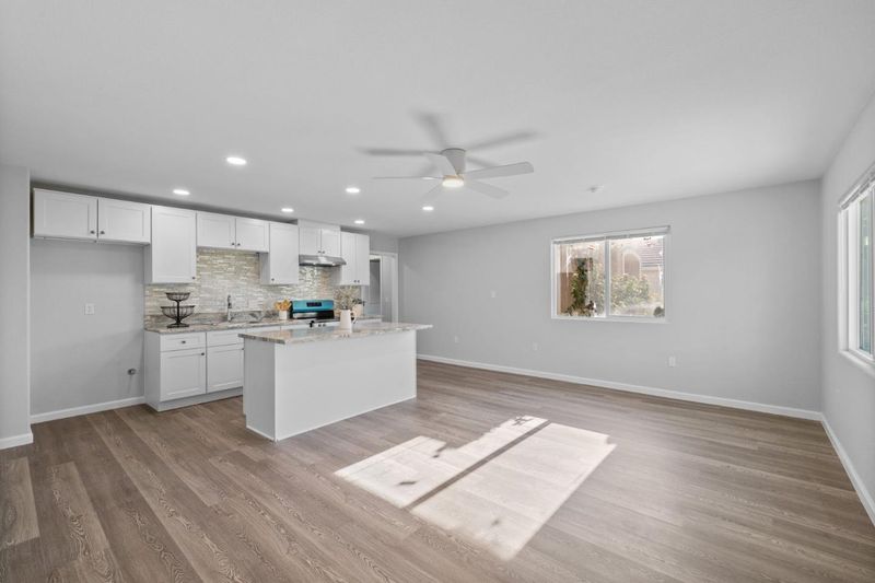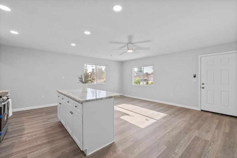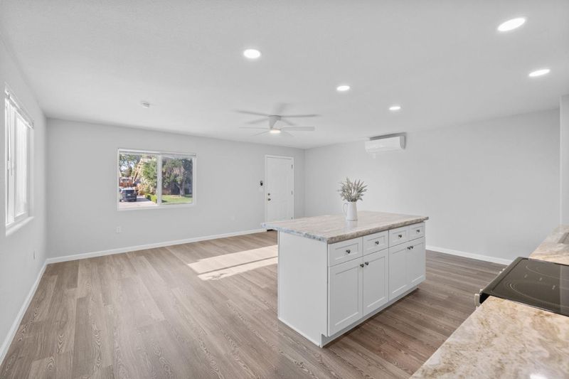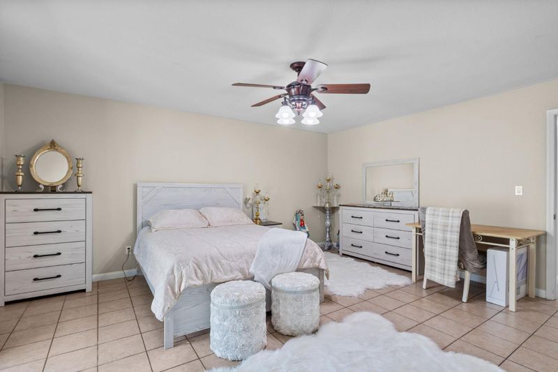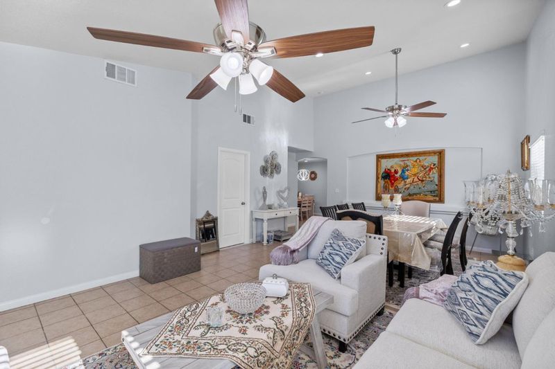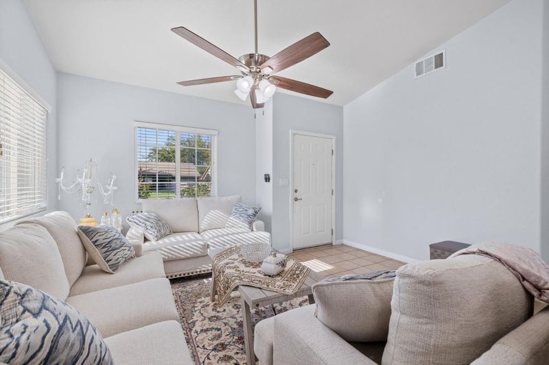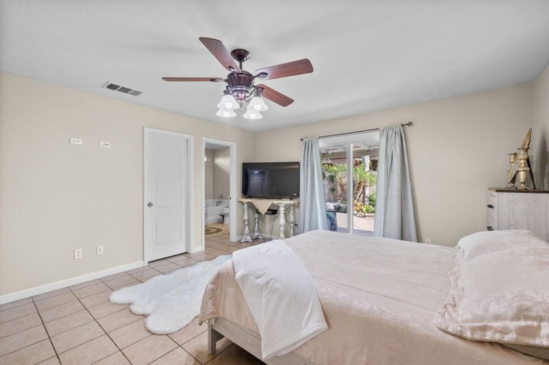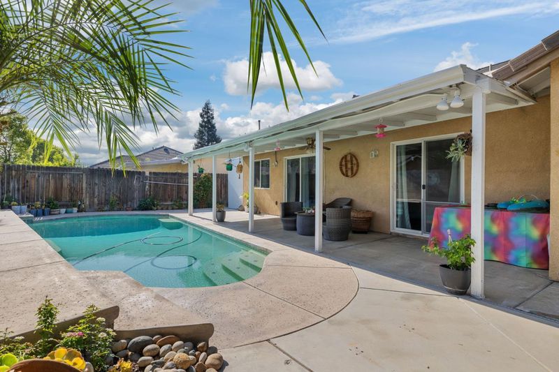 Upon entering this lovely 3 bedroom, 2 bath home, you'll be welcomed by high ceilings and a spacious formal living room that seamlessly transitions into the dining area. This home boasts tile flooring throughout. The kitchen is equipped with a large breakfast bar offering ample seating space, complemented by granite countertops, a mosaic tile backsplash, and stunning white cabinetry for all your storage needs. The main living room is bright and airy, filled with natural light. The primary bedroom features an ensuite bathroom with dual sinks, a walk-in shower, and a separate soaking tub while the remaining bedrooms are all a great size for kids, guests, or office space. The backyard is an entertainer's dream, with a large patio area and a luxurious pool for hosting year-round. This home also includes a 2 bedroom, 1 bath ADU unit that was converted from the garage that can be used as a home office, granny unit or income producing unit. Complete with a full kitchen, featuring gorgeous backsplash and countertops, a bathroom with a walk-in shower.