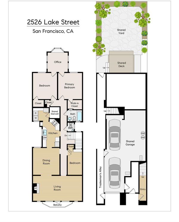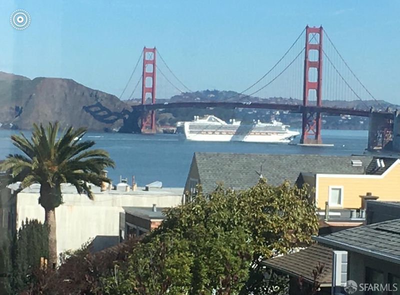 Photos coming soon. With breathtaking views of the Golden Gate Bridge, Bay and Marin Headlands, this tastefully remodeled condo sits atop a handsome, Edwardian building in the Lake Street neighborhood, offering an enviable blend of city living - a neighborly vibe plus easy proximity to iconic natural and cultural treasures plus world class dining. Awash in natural day light and featuring generously proportioned rooms, this upper unit seamlessly blends original architectural details with current amenities. High ceilings, hardwood floors, a wood-burning fireplace, and striking moldings harmonize with modern electrical wiring, a custom designed kitchen, updated baths and period-style hardware. The well-appointed, chef's kitchen features custom cabinetry designed to honor the original architectural style, stainless steel appliances, ample counters and abundant storage. The laundry and stairs to the lovely shared garden are located in the kitchen. Two large bedrooms and an office/sunroom look to panoramic views of the Golden Gate Bridge, Bay and Marin Headlands. A third bedroom, one full bath and one half bath offer convenience and flexibility. The garage offer one-car parking and storage. Located on a tree-lined block on coveted Lake Street nestled between the Presidio and Land's End
