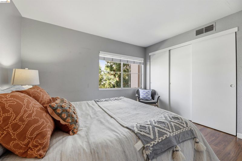 Welcome to this beautifully updated home offering comfort, convenience, and serene surroundings in an unbeatable location. This inviting residence features two generously sized bedrooms plus a versatile bonus room ideal for an office, nursery, or creative space. The light-filled living room showcases a charming wood-burning fireplace, while the kitchen offers plentiful cabinet space, pantry storage, a newer double oven, and a newly purchased refrigerator. Just off the kitchen is a dedicated laundry room with front-loading washer and dryer. The primary suite features a walk-in closet and private bath. Enjoy your own porch with custom screen door leading to tranquil Albany Hill views. Includes one deeded parking space. HOA amenities include pool, hot tub, tennis courts, fitness center, sauna, clubhouse, cable TV, package center, hot water, and internet. Conveniently located near BART, Transbay bus, Ranch 99, and Solano Ave shops and dining.