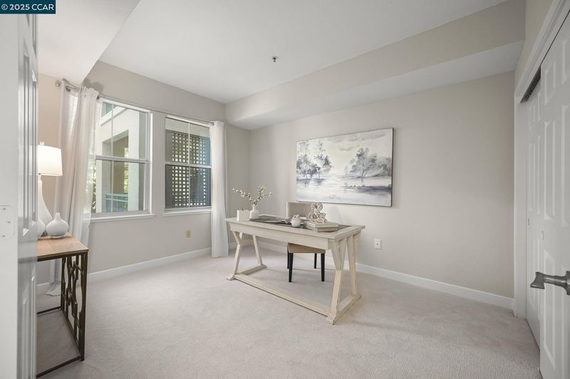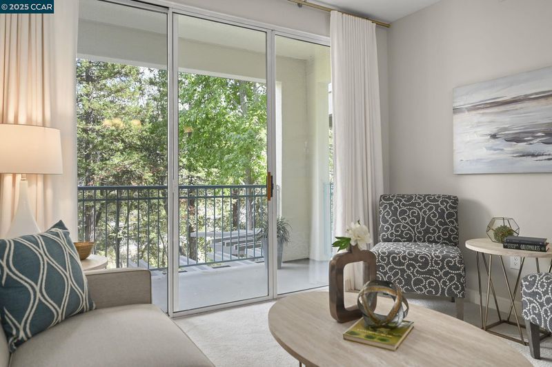 Beautiful 2-bedroom, 2-bathroom condo in The Waterford, a 55+ independent active senior living community in Rossmoor. Overlooking trees and facing away from the parking lot, this bright second-floor unit features an open kitchen that flows into the dining area and living room with sliding glass doors leading to a lovely deck. The primary suite offers a separate vanity area and an additional closet. The second bathroom includes a stall shower and in-unit washer and dryer. Elevator access allows for a no-step entry. Additional storage is conveniently located just one door down the hall. Carpet was replaced and the unit was freshly painted the week of September 22, 2025. HOA dues include water, trash, recycling, Comcast basic cable, and internet. Residents enjoy weekly housekeeping, one meal per day, and access to all activities and amenities. Community bus service provides transportation to nearby shopping areas and BART. Security and front-gate monitoring are also included.